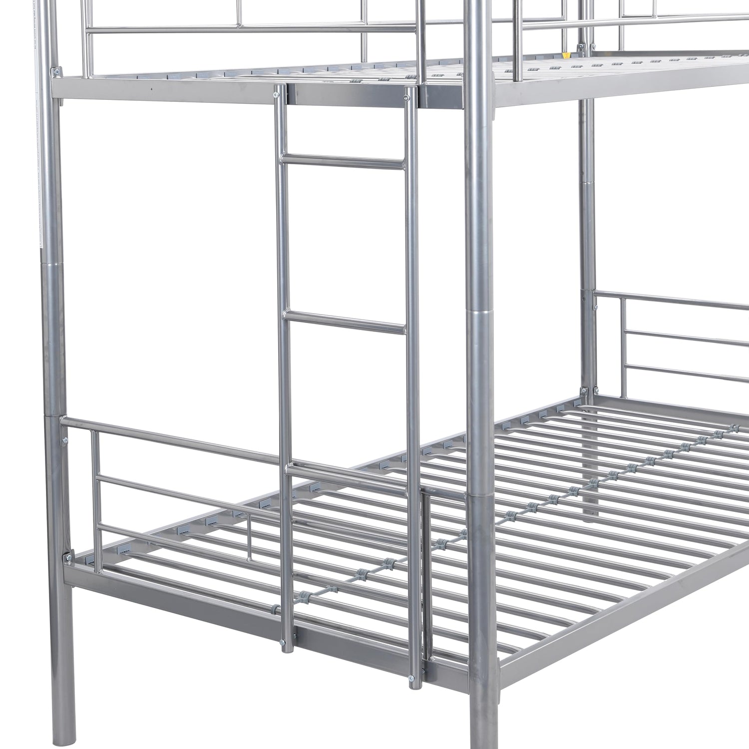 KEIKI Twin Over Twin Size Metal Detachable Bunk Bed Frame with 2 Side Ladder, Trundle and Guardrail, Modern Style Bunk Beds with Slats, No Box Spring Required, Easy Assembly, for Bedroom, Silver