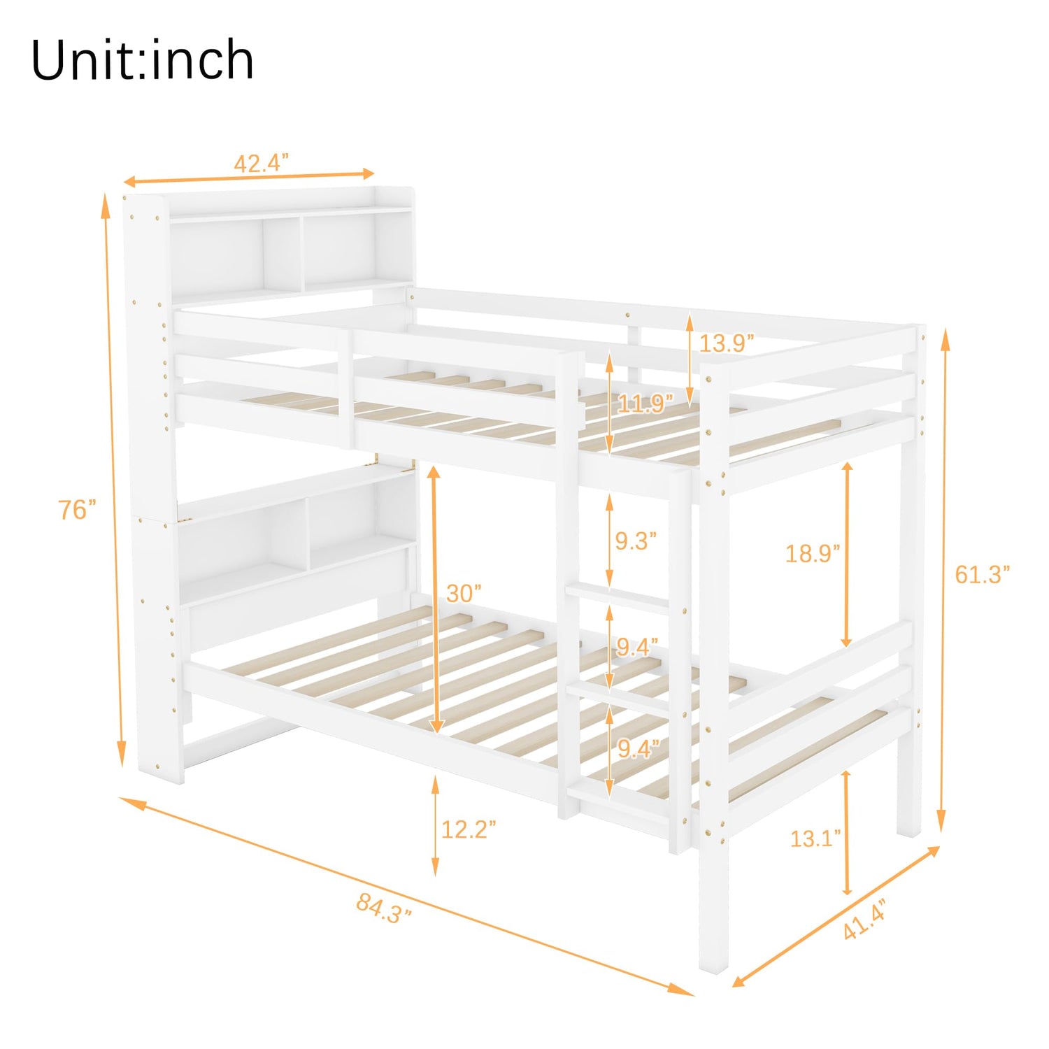 • [Bookcase Headboard] The integrated bookcase headboard features compartments for books, toys, lamps, and other accessories. This space-saving design eliminates the need for bedside cabinets, making it ideal for smaller rooms.
