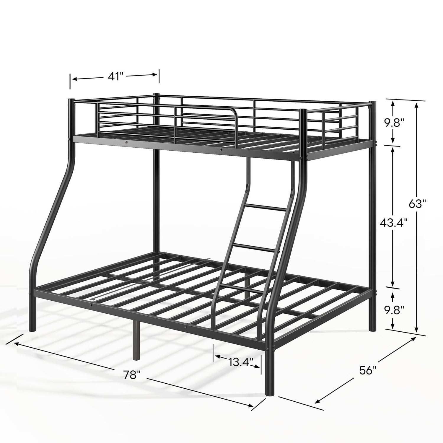 The bed features 9.8-inch high guardrails and a built-in ladder, providing safety and easy access for children; The sleek black finish adds a modern touch, fitting seamlessly into various bedroom styles