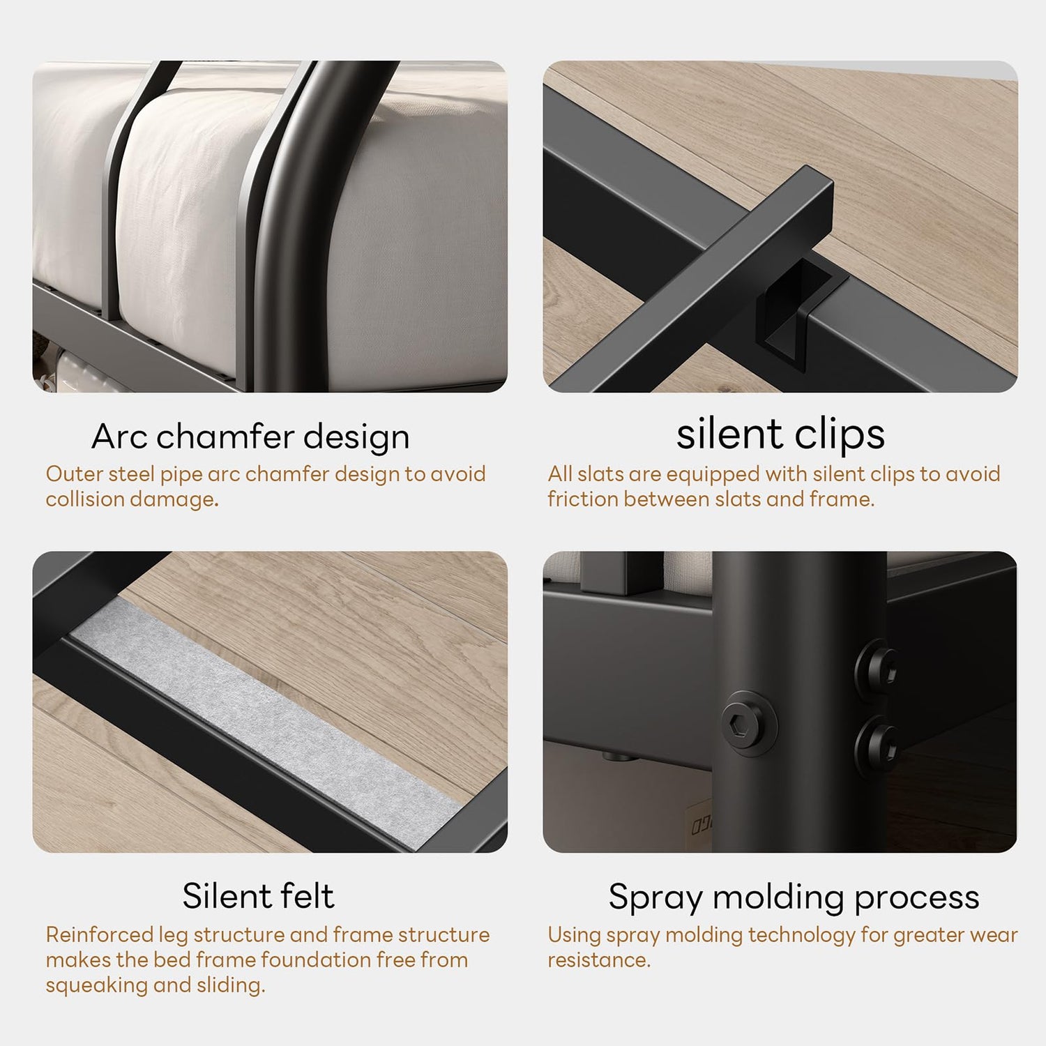 • Stylish & Functional:The sleek black finish adds a modern touch to any bedroom, complementing various decor styles; The 9.8-inch underbed clearance provides additional storage, helping you keep your room neat and organized