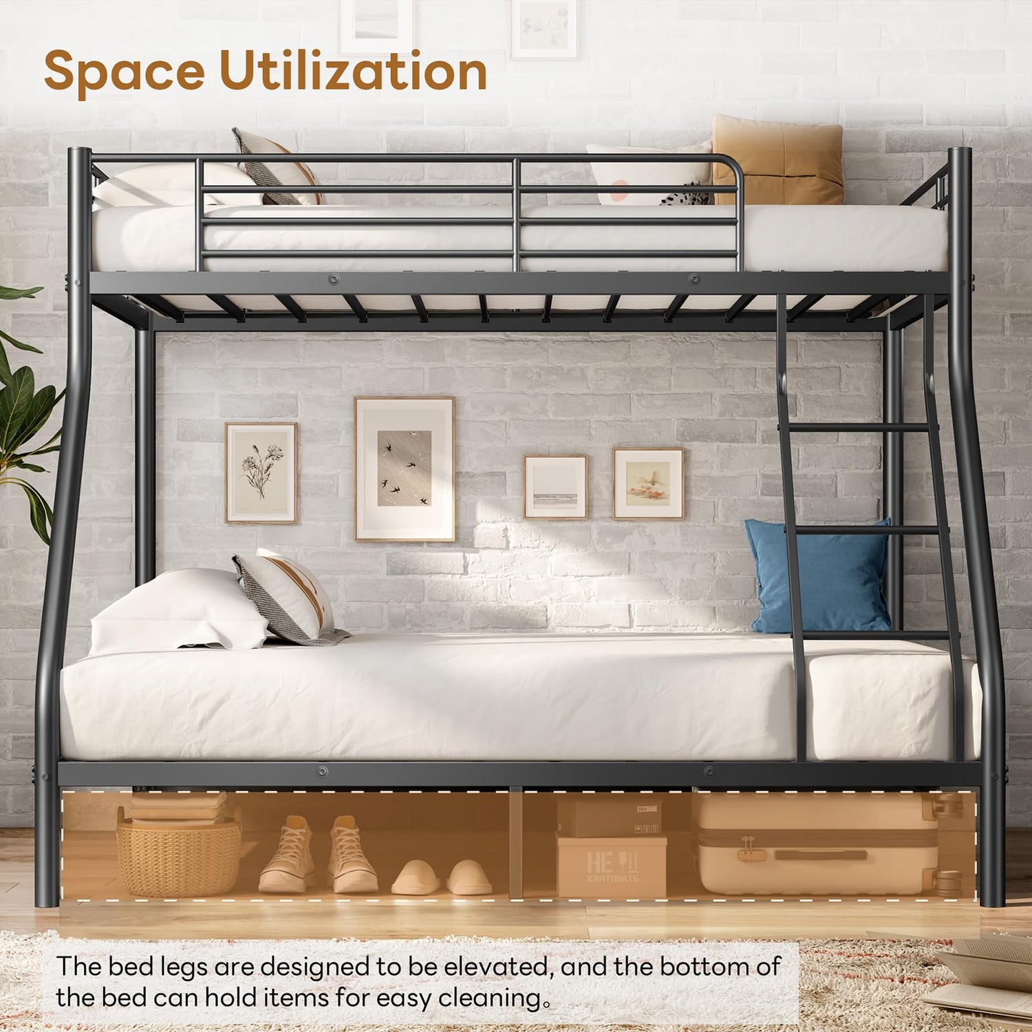 • Space-Saving Design:This twin over full loft bunk bed maximizes floor space while offering comfortable sleeping arrangements for kids, teens, and adults; Perfect for small rooms, apartments, or shared bedrooms, it helps create more usable space for play, study, and storage