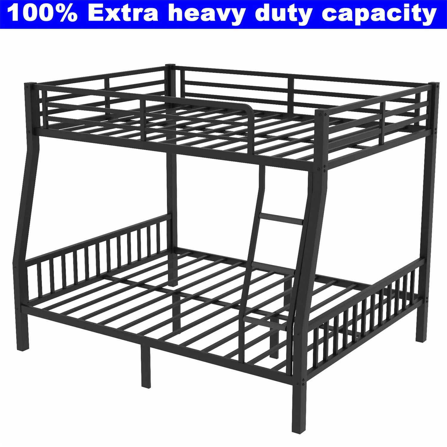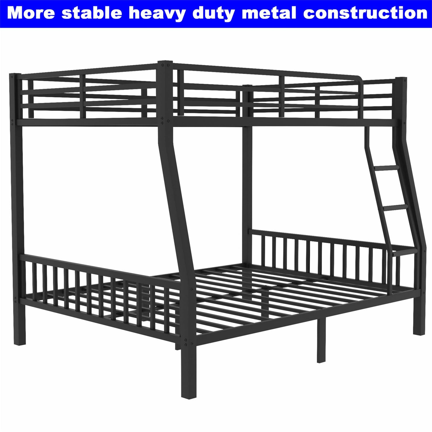 Kntyr Upgraded Version Thicken Metal Full XL Over Queen Bunk Bed, Stronger Heavy Duty Steel Bunk Bed Full Over Queen Size, Best Bunkbed Frame for Adults, Easy Assembly, Black (Full XL Over Queen)