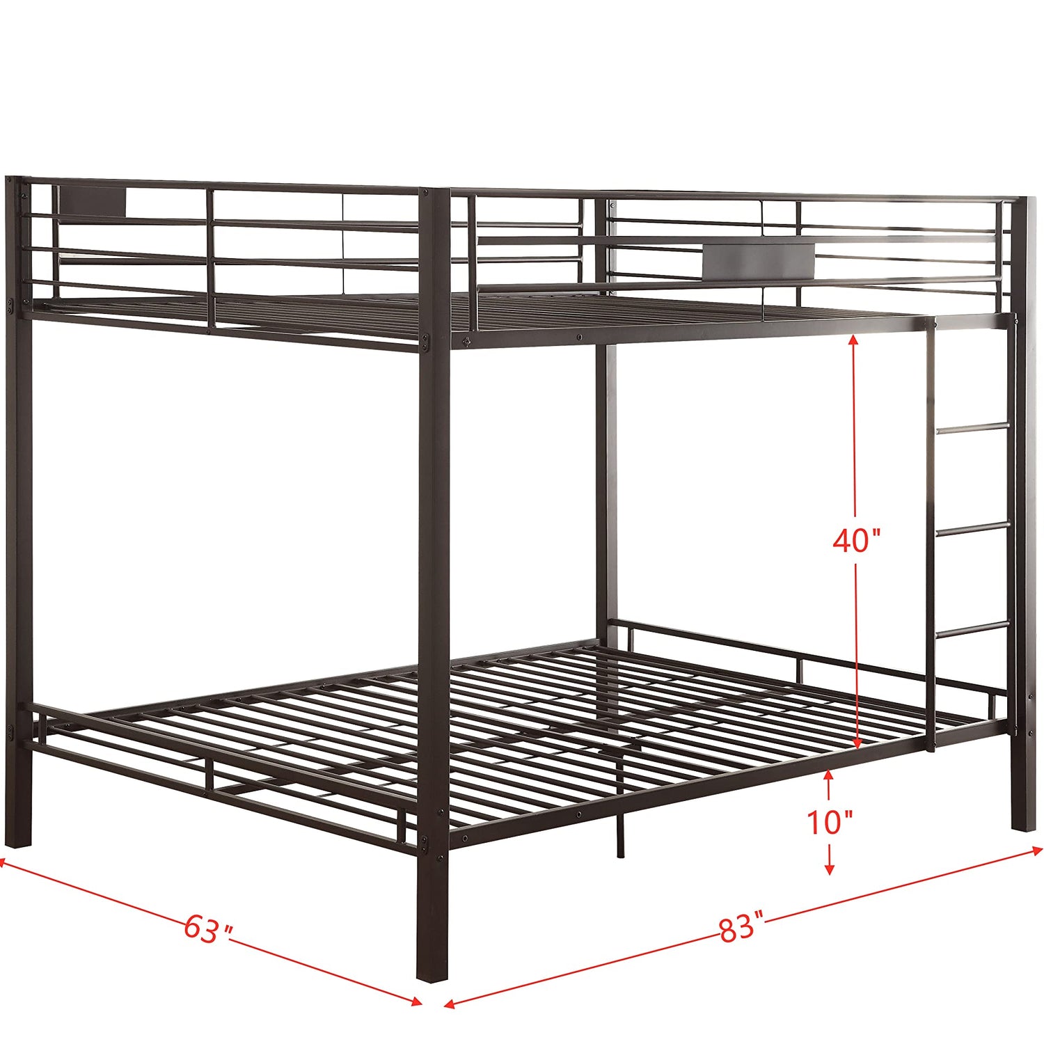 2. Bunk Full XL/Queen, Dimension: 83" x 63" x 65"H, Top Bed Requires XL Full Mattress: 54"W x 80"L, Weight: about 132 Pounds