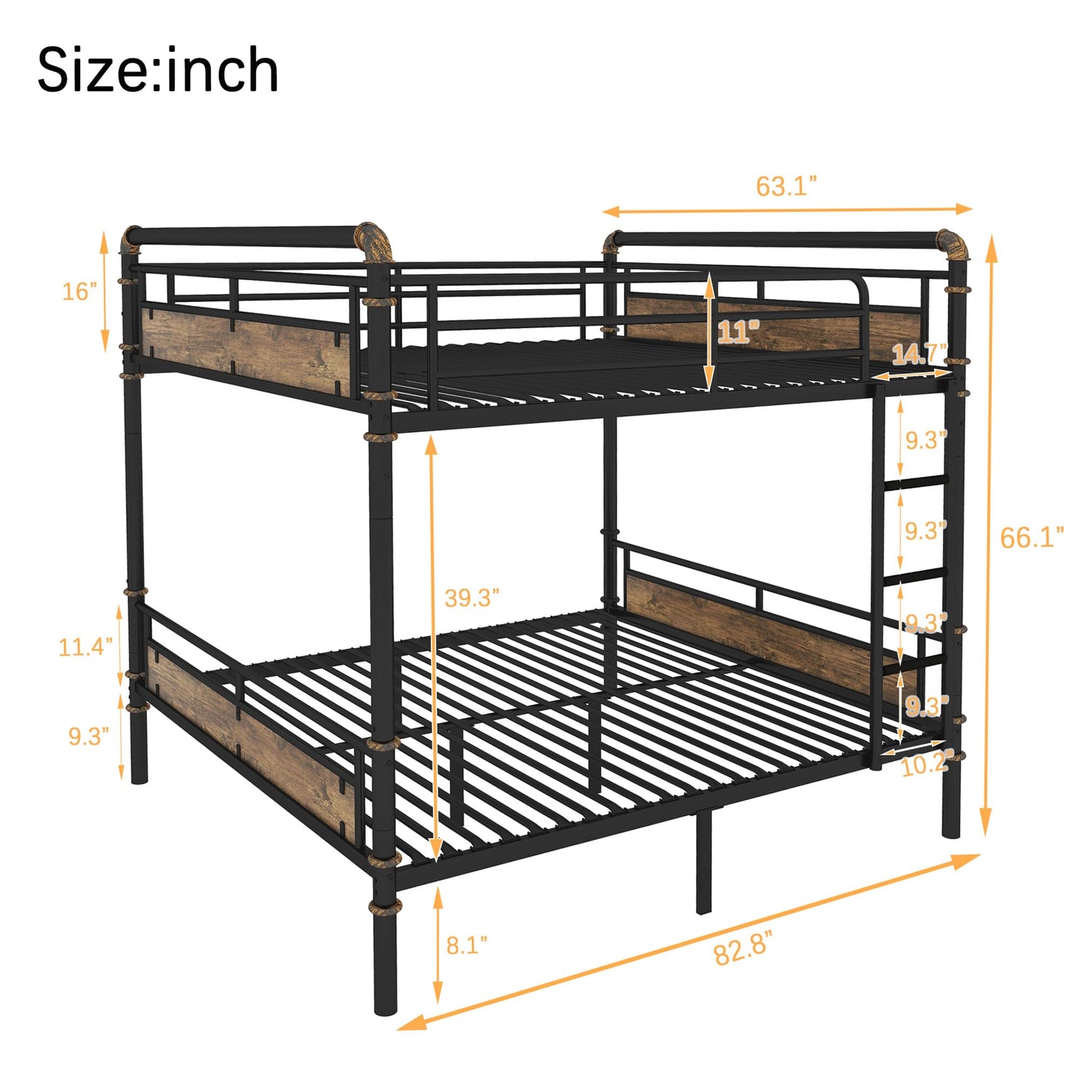 LEEKOUS Upgraded Version Thicken Metal Queen Over Queen Bunk Bed, Best Industrial Style Heavy Duty Queen Size Bunk Bed, Convertible into 2 Beds Wood Board, Water Pipe Design for Adults (Queen)