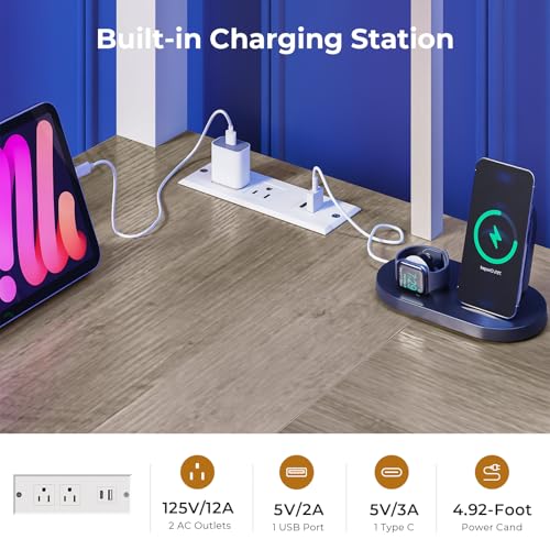 - L-Shaped Desk with Charging Station: The loft bed twin size with built-in charging station features 2 standard outlets, 1 USB port, and 1 fast-charging USB-C port, power all your devices without messy extension cords. Separate L-shaped desk provides ample space for work, study, or gaming. Utilize the two-tier corner storage shelf to display books, plants, or decor. The sturdy metal mesh panel includes 6 convenient hooks for hanging bags, headphones, hats, or key