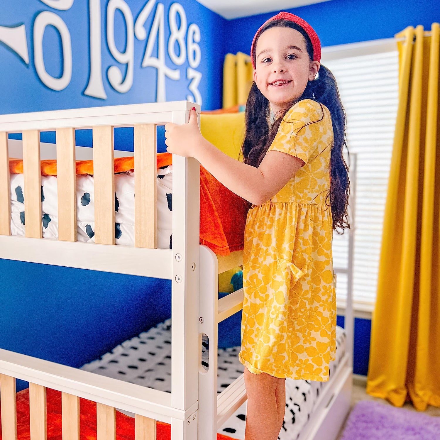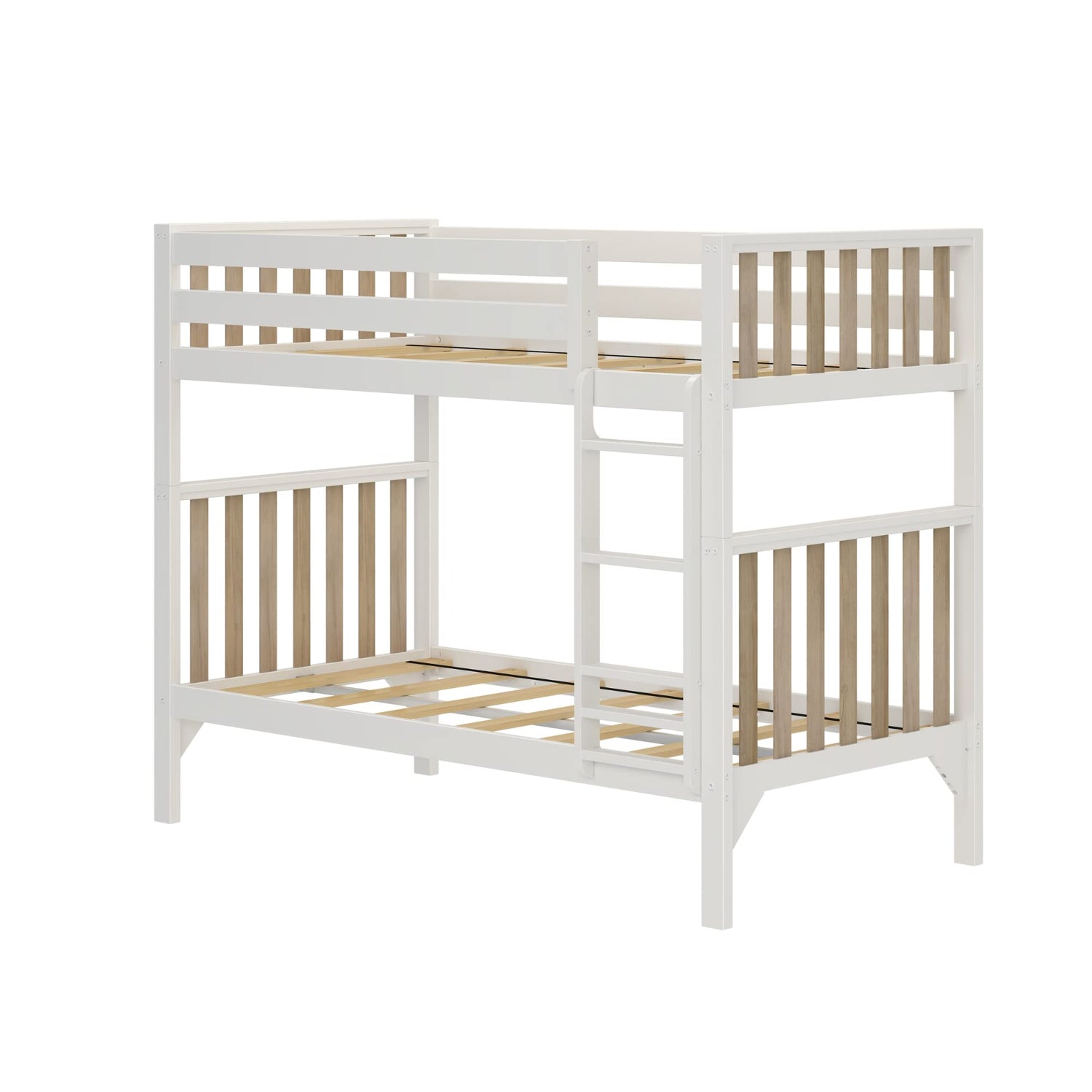 Details: The Max & Lily Scandinavian Twin over Twin Bunk Bed brings a clean, neutral look to your modern and minimalist kids room! Crafted with knot-free, solid pine wood and aspen wood, these twin bed frames offer exceptional strength and sturdiness. A two-tone mix of white and blonde wood or a clean, solid finish creates sleek, modern style. The top bunk features tall, 14-inch guardrails, so the bunk bed safely fits standard mattress sizes. A straight ladder with rounded edges offers comfortable, easy climbing. Added bonus – the ladder can be installed on either the left or right side of the bunk bed to fit your room perfectly. The sleek headboard design and flush, color-coordinating hardware give these kids bunk beds a complete look. With soldi pine wood slats and a metal support bar for the top bunk, each sleeping surface can support 400 lbs. of resting weight. This heavy-duty bunk bed meets or exceeds federal safety standards for kids furniture. This kids bunk bed includes easy-to-read instructions, tools, and hardware for a quick setup. The Scandinavian Twin over Twin Bunk Bed from Max & Lily offers exceptional quality and affordability that kids and their parents will enjoy for years to come. Max & Lily is a member of the Maxwood family of brands – the kids furniture experts bringing a tradition of superior quality, safety, and fun!