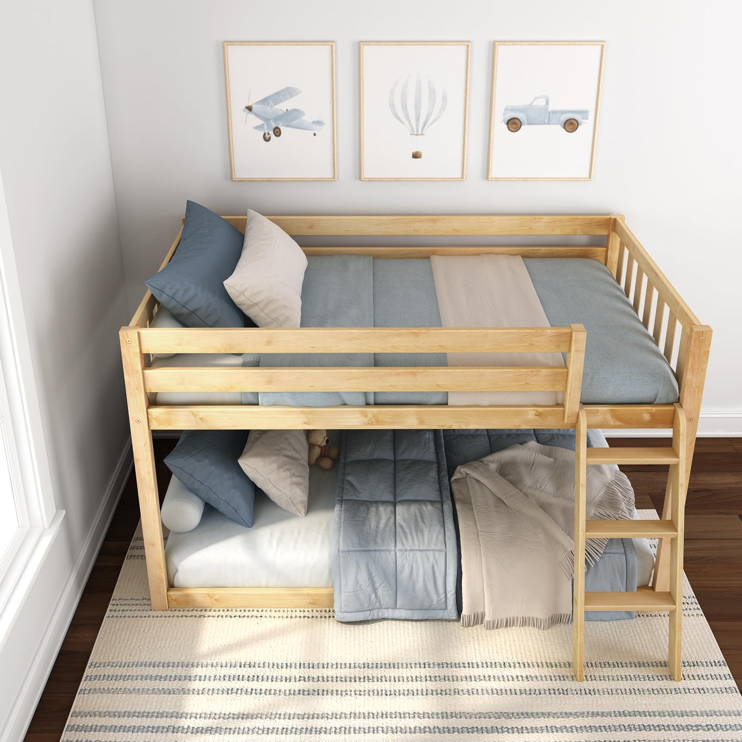 Max & Lily Fundamental Twin Low Bunk Bed - Solid Wood Kids Bed Frame with High Safety Features
