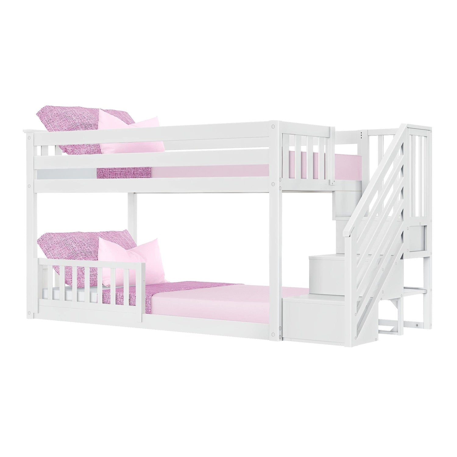 Max & Lily Low Bunk with Stairs and Single Guard Rail, White