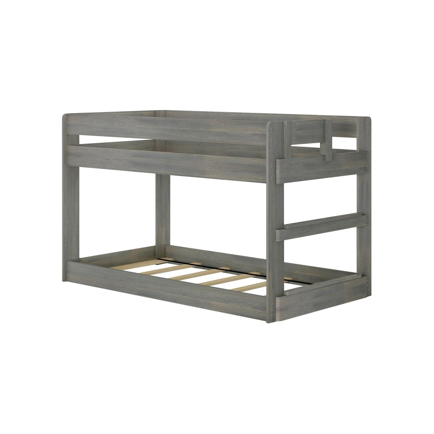Max & Lily Modern Farmhouse Low Bunk Bed, Twin-Over-Twin Bed Frame For Kids, Driftwood