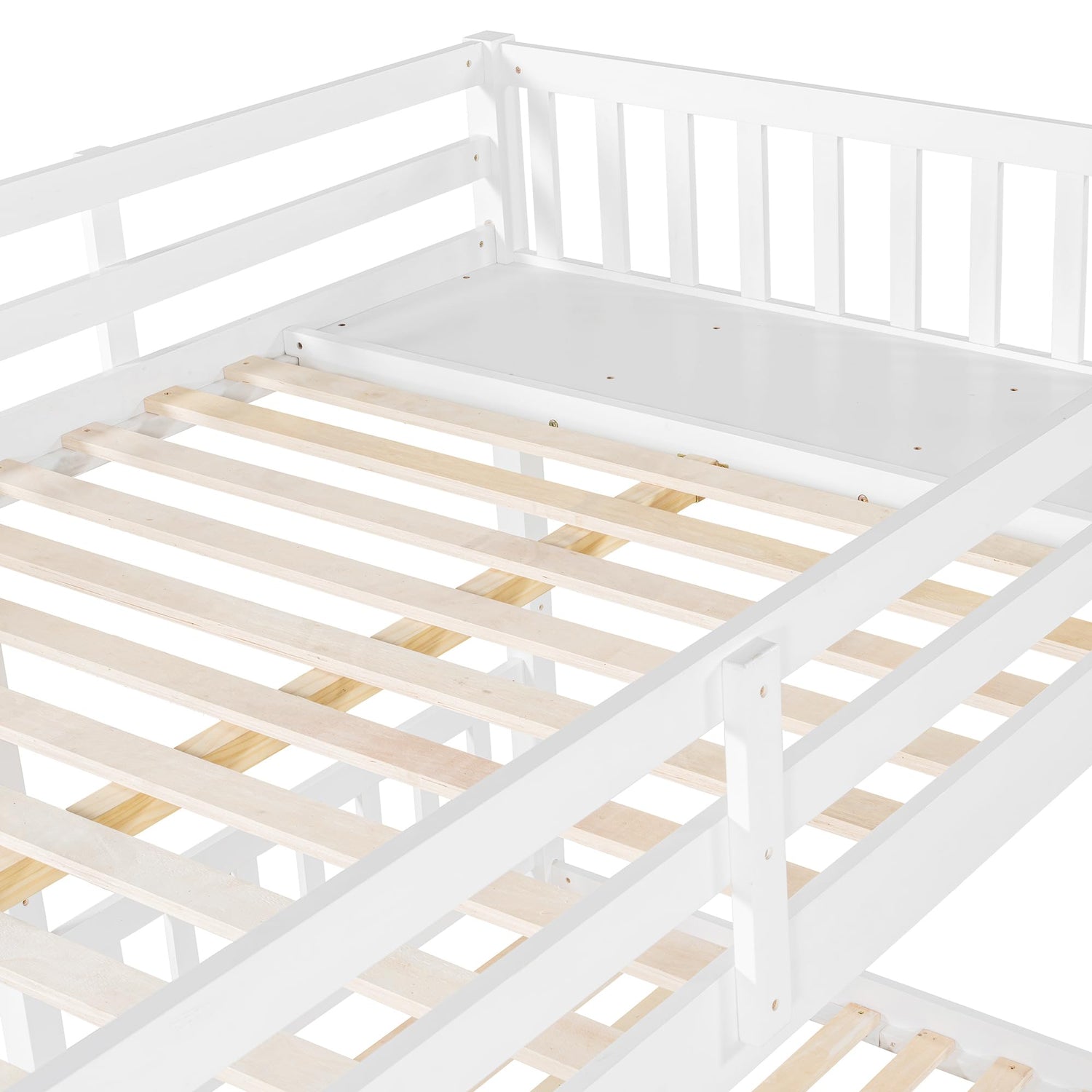 Merax Full Over Twin & Twin Bunk Bed for 3, Wooden Triple Bunk Bed with 2 Storage Drawers, Ladder and Guardrails, No Box Spring Needed, White