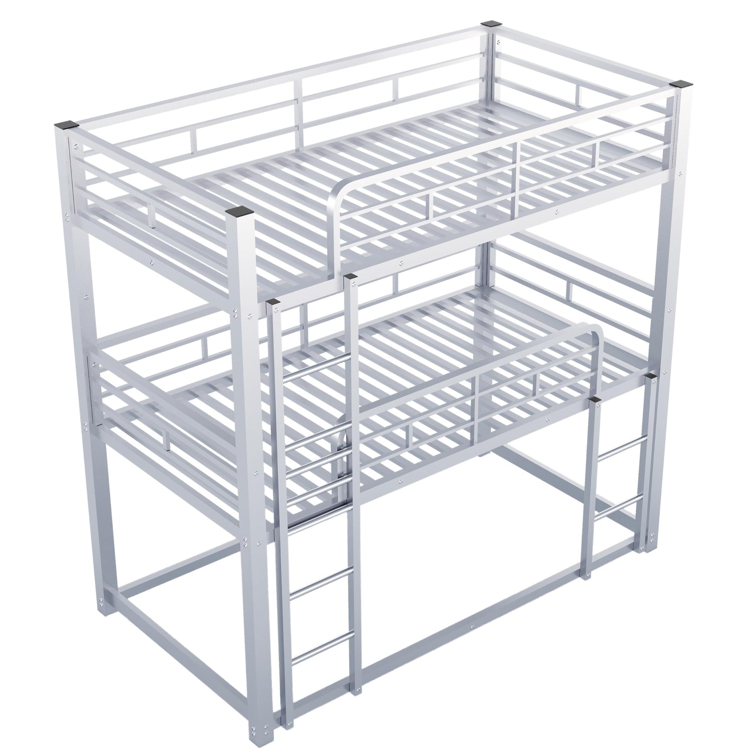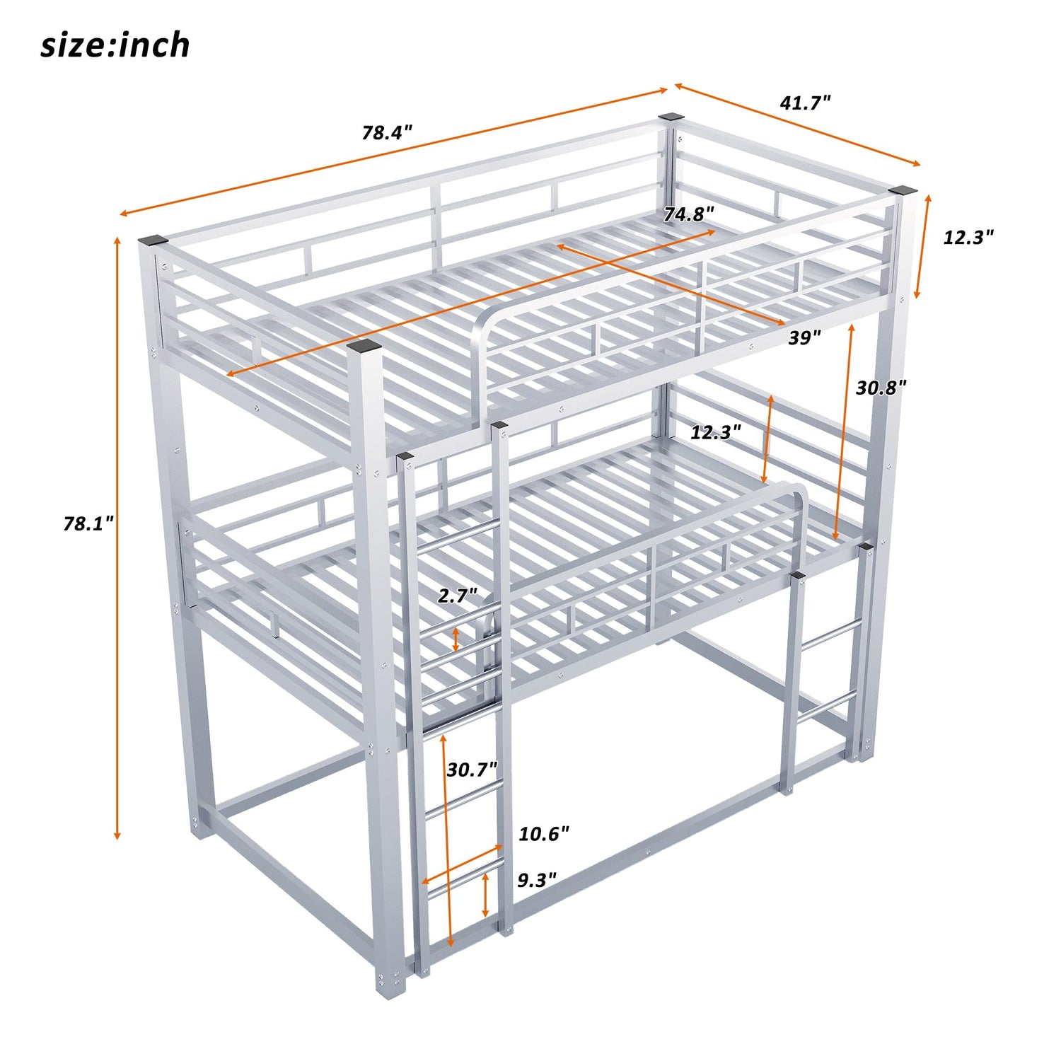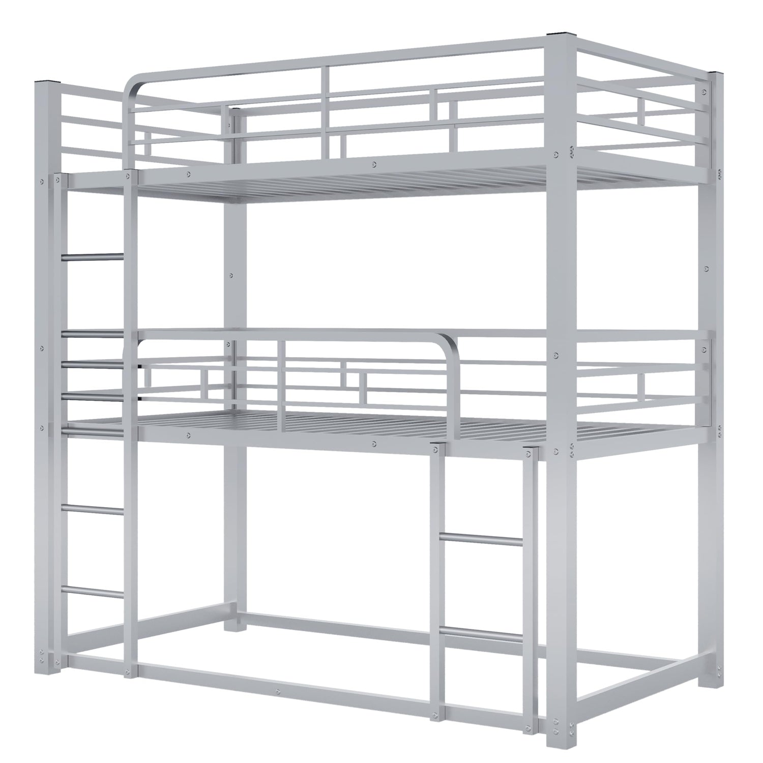 Merax Twin Over Twin Over Twin Metal Bunk Bed, Triple Bunk Bed for Teens, Adults, Girls, Boys, No Box Spring Needed, Silver