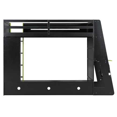 Merax Twin Size Gaming Loft Bed with Desk and Multi-Storage Shelves, Wooden Loft Bed Frmae with Light, Space-Saving Bed with Safety Guardrail