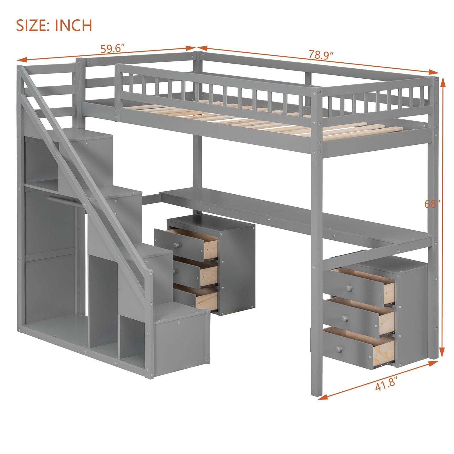 - Space-Saving Design - Independent side staircase ensures safe top-bunk access while freeing under-bed space for storage, clothing, or play areas (Dimensions: 78.9"L x 59.6"W x 68"H).
