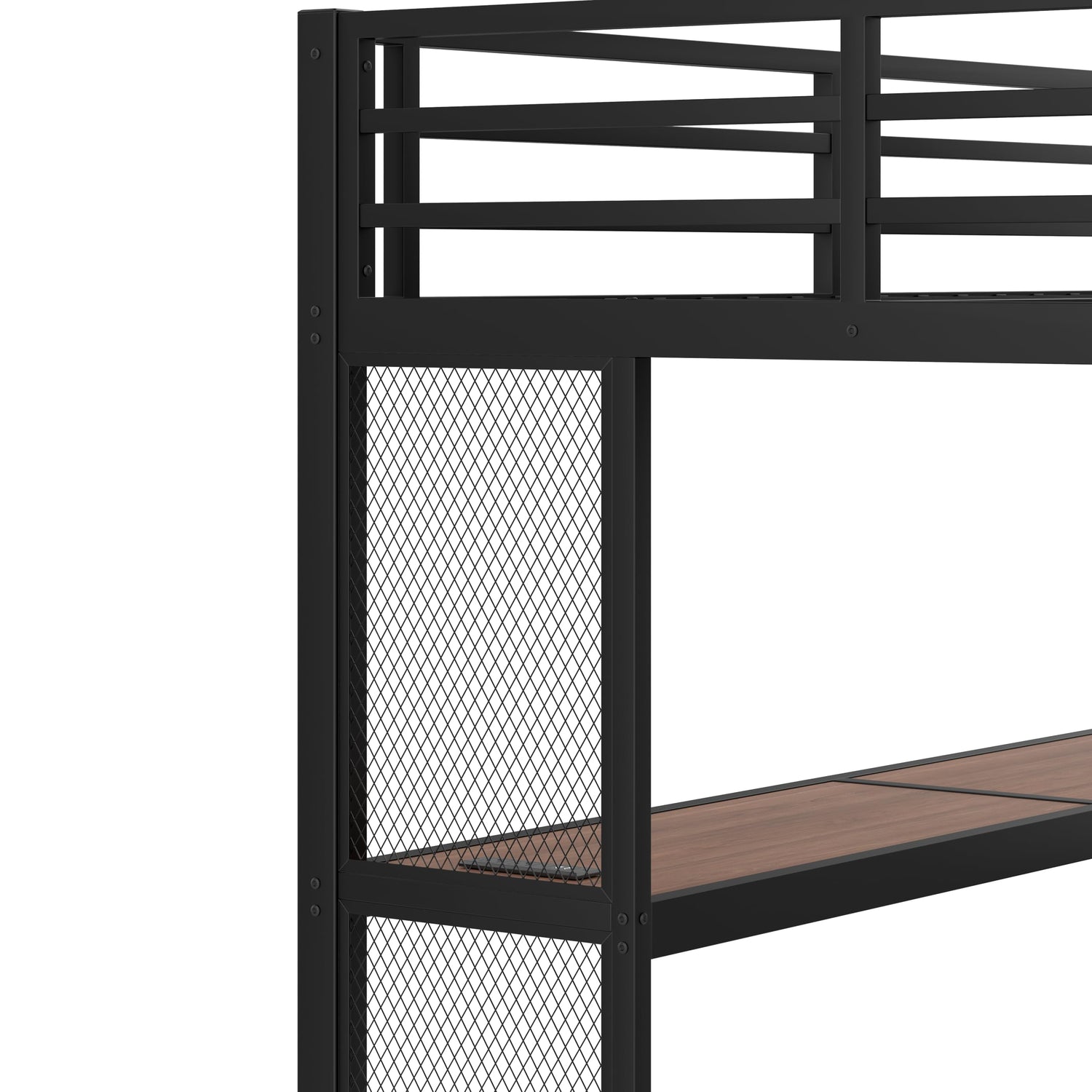 - đ„ăHeavy Duty Metal Loft BedăThis full loft bed with desk adopt a stronger square heavy duty metal frame structure that includes closely packed metal slats.Each component is securely secure with heavy duty screws and tested to ensure the loft bed frame security and stability.