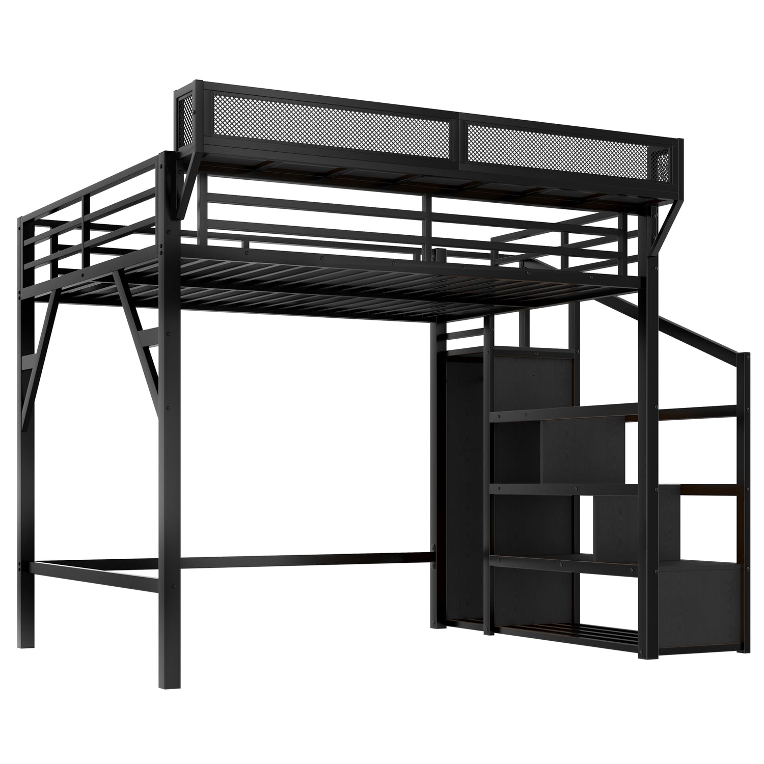 - đ„ăHeavy Duty Loft Bed FrameăBuilt with a reinforced steel frame, durable metal slats, and full-length guardrails, this queen size loft bed with storage and wardrobe and offers superior strength and support. The sturdy structure eliminates squeaks and wobbles,making it an excellent choice for both teens and adults seeking stability and quiet sleep.