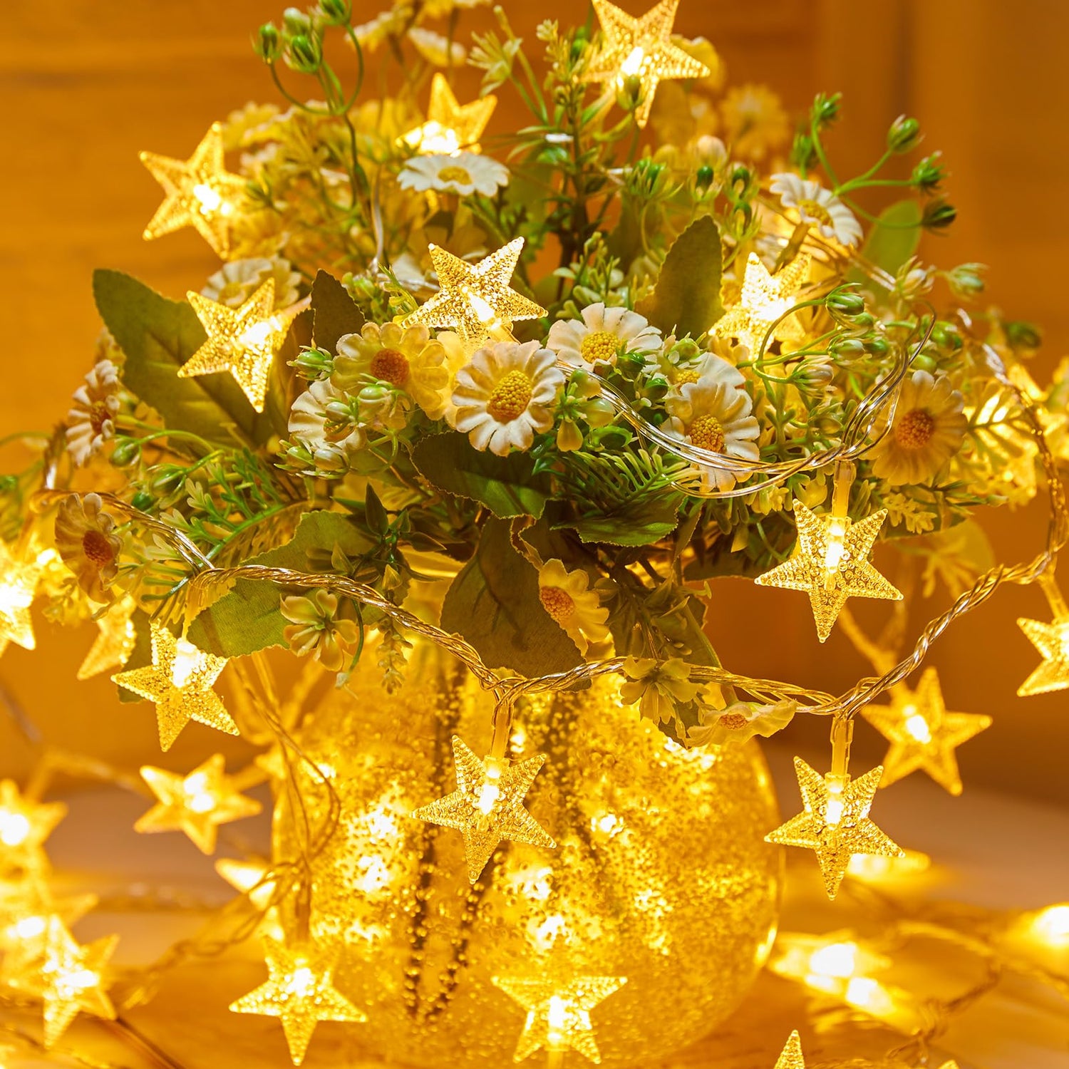 Minetom Star String Lights Battery Operated - 17 ft 50 LED Star Fairy String Lights with Timer, Waterproof for Indoor Bedroom Tent Loft Bed Patio Party Wedding Decor, Warm White