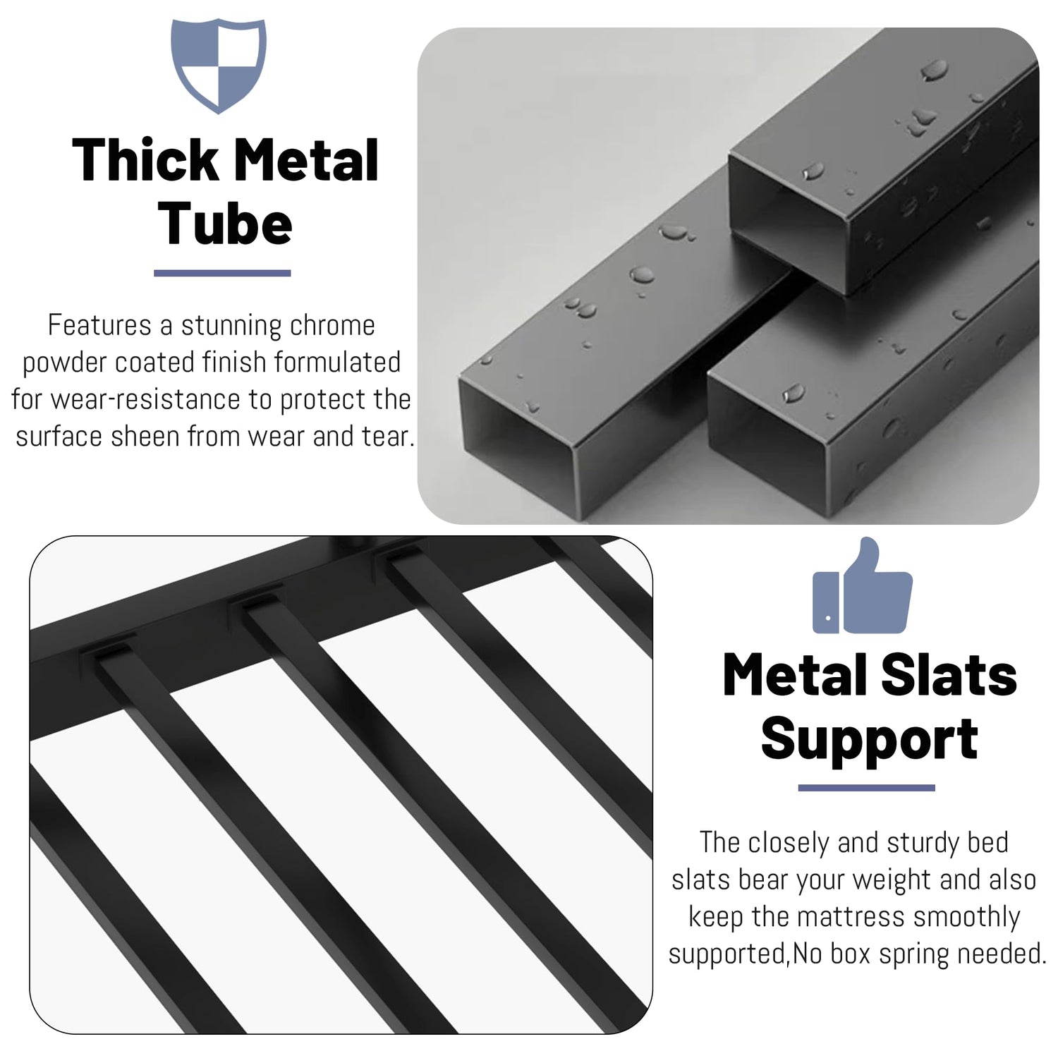 - 【Sturdy Steel Construction】This metal bunk bed queen over queen is made with sturdy metal ,with strong bearing capacity, the thick tubes and tightly screwed bed slats increase the stability of the bunk bed. No box spring needed(Mattresses are not included) Estimated Weight Capacity :Top bed-350Lbs , Bottom bed-600Lbs .