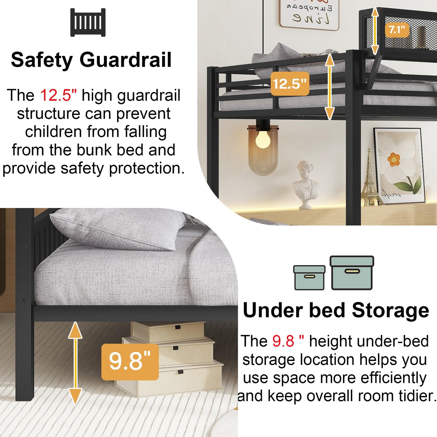 - 【Safety Guardrail & Wide Ladder】 The upper queen bed comes with a 12.5 inch high safety guard which can prevent children from falling from the queen size bunk bed and provide safety protection. Our heavy duty metal bunk beds comes with sturdy built-in ladder making it safer for children to climb up and down.