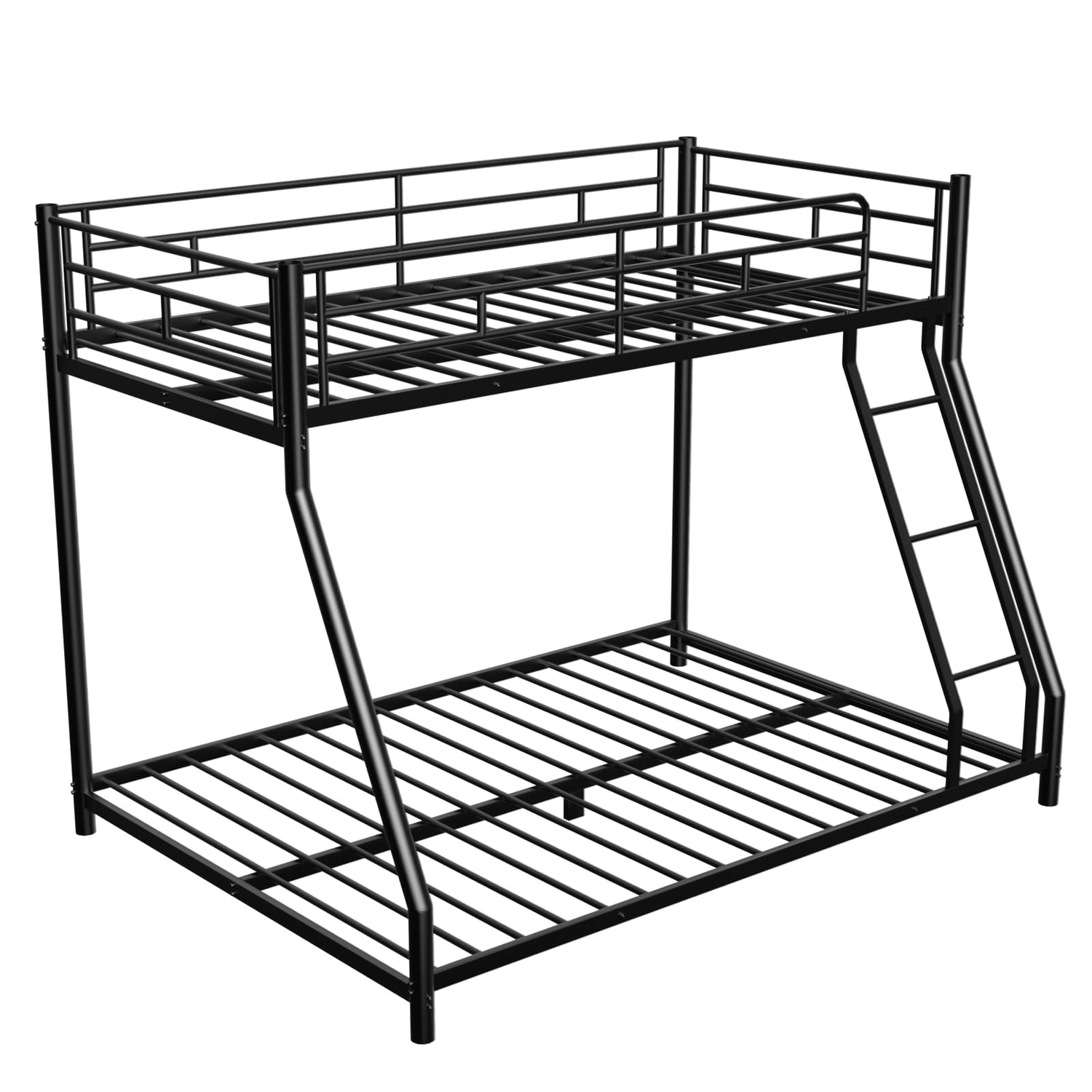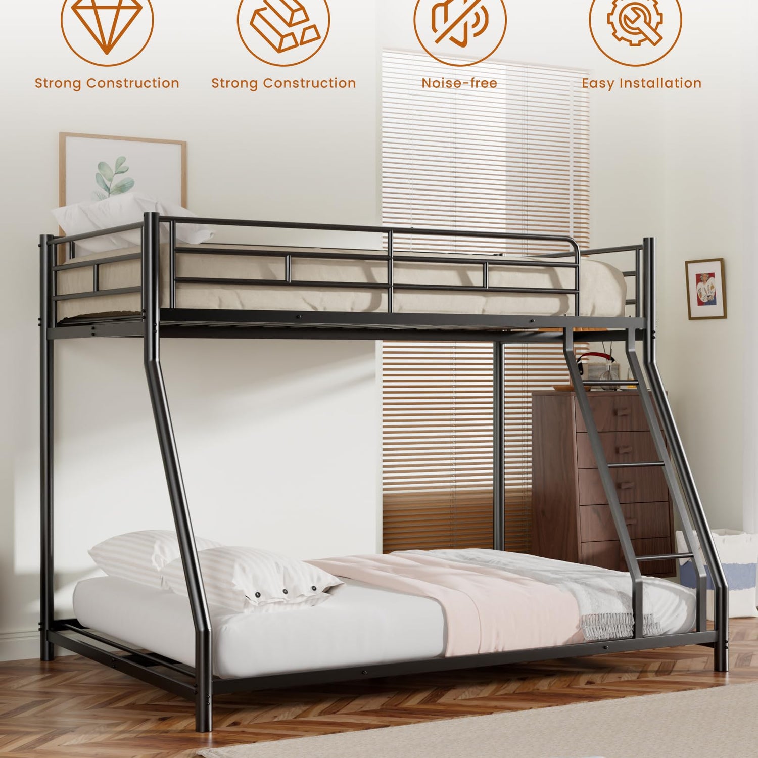 Mixcous Twin Over Full Bunk Bed for Adults & Kids, Heavy Duty Bunk Beds with EVA Padded Ladder and Full-Length Guardrails, Noise-Free Metal Bed Frame, Space-Saving Design, Black