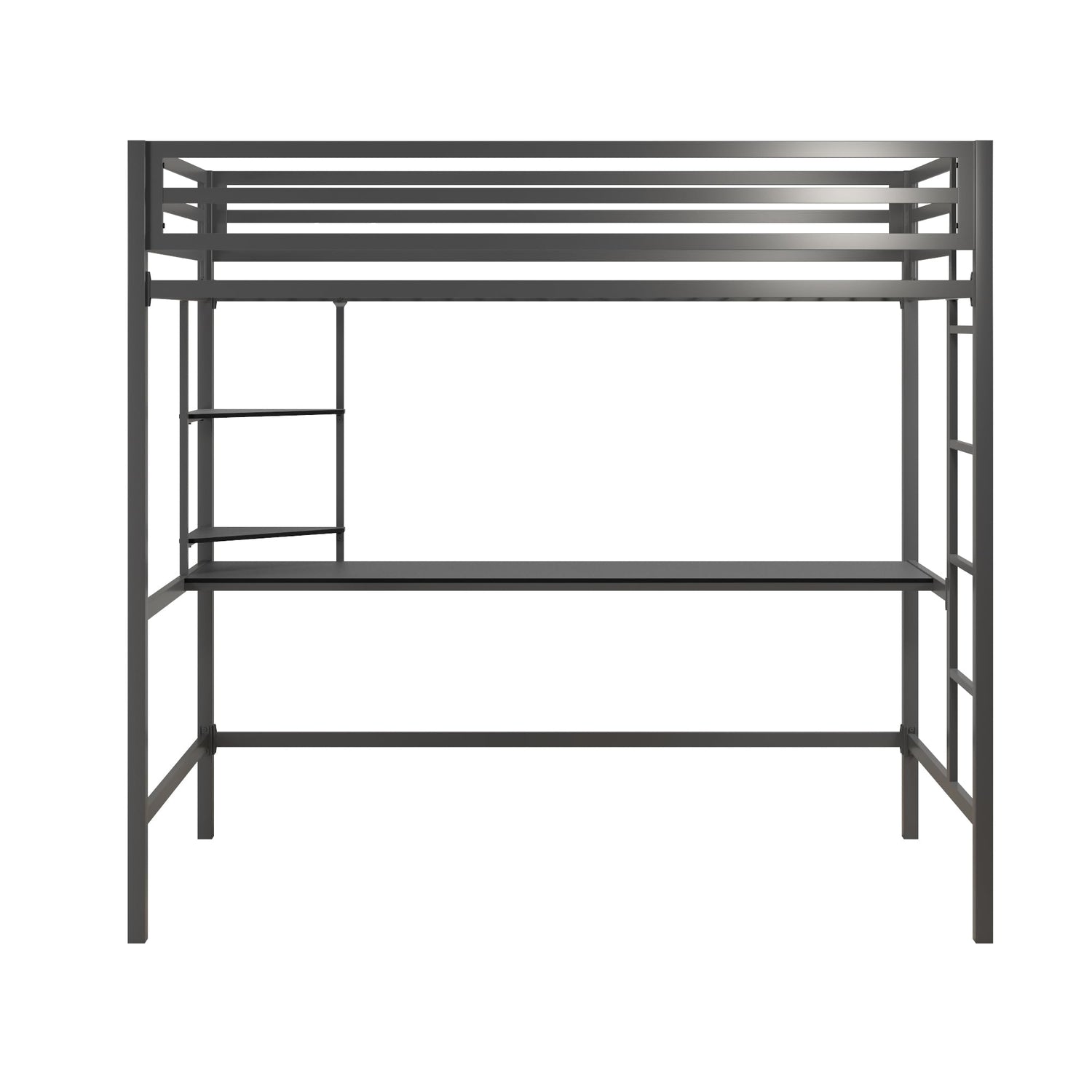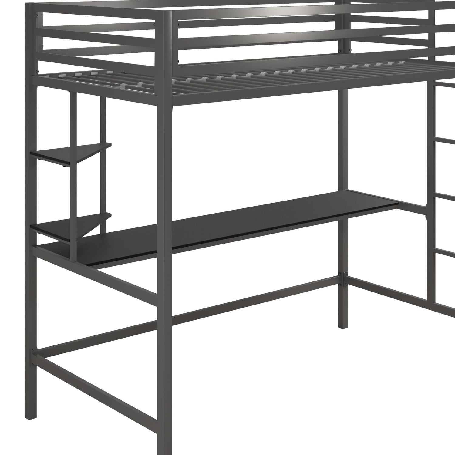 Novogratz Maxwell Grey Metal Twin Loft Bed with Integrated Desk & Shelves