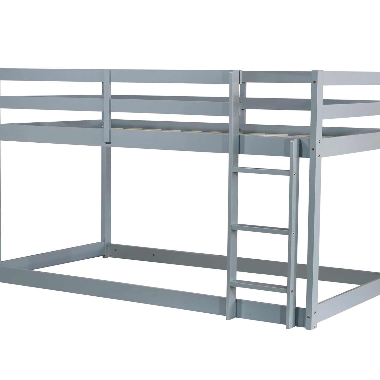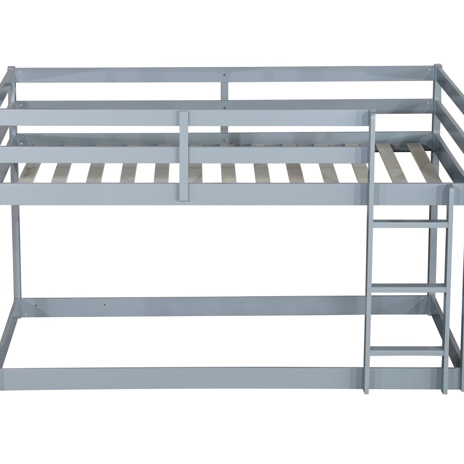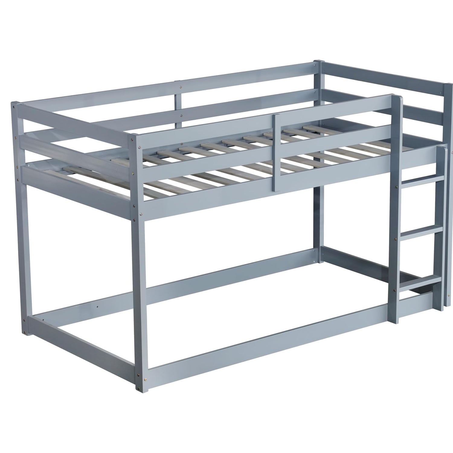 PVWIIK Bunk Bed Twin Over Twin with Ladder & Safety Guard Rails,Solid Wood Bunk Bed Frame for Kids,No Box Spring Needed, Grey