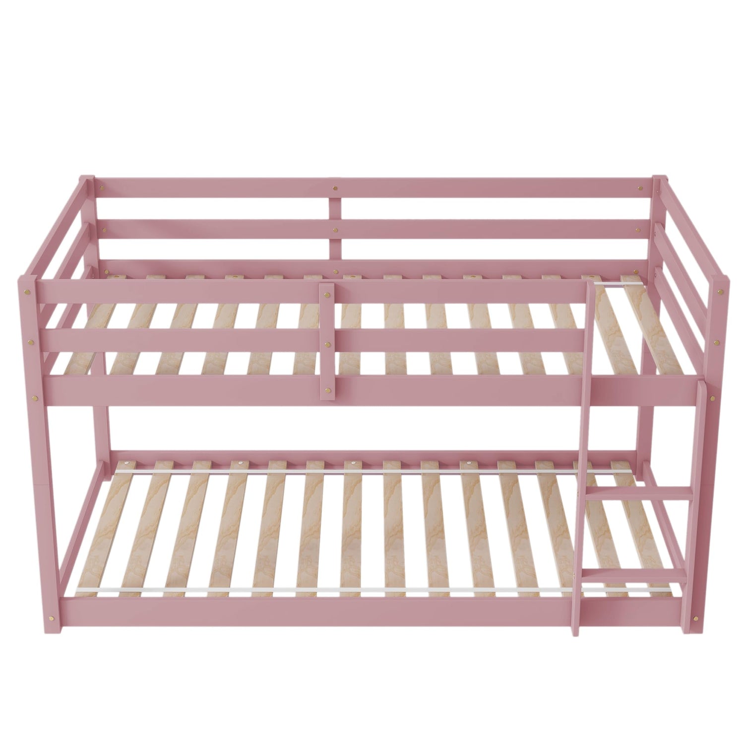 PVWIIK Bunk Bed Twin Over Twin with Ladder & Safety Guard Rails,Solid Wood Bunk Bed Frame for Kids,No Box Spring Needed, Pink