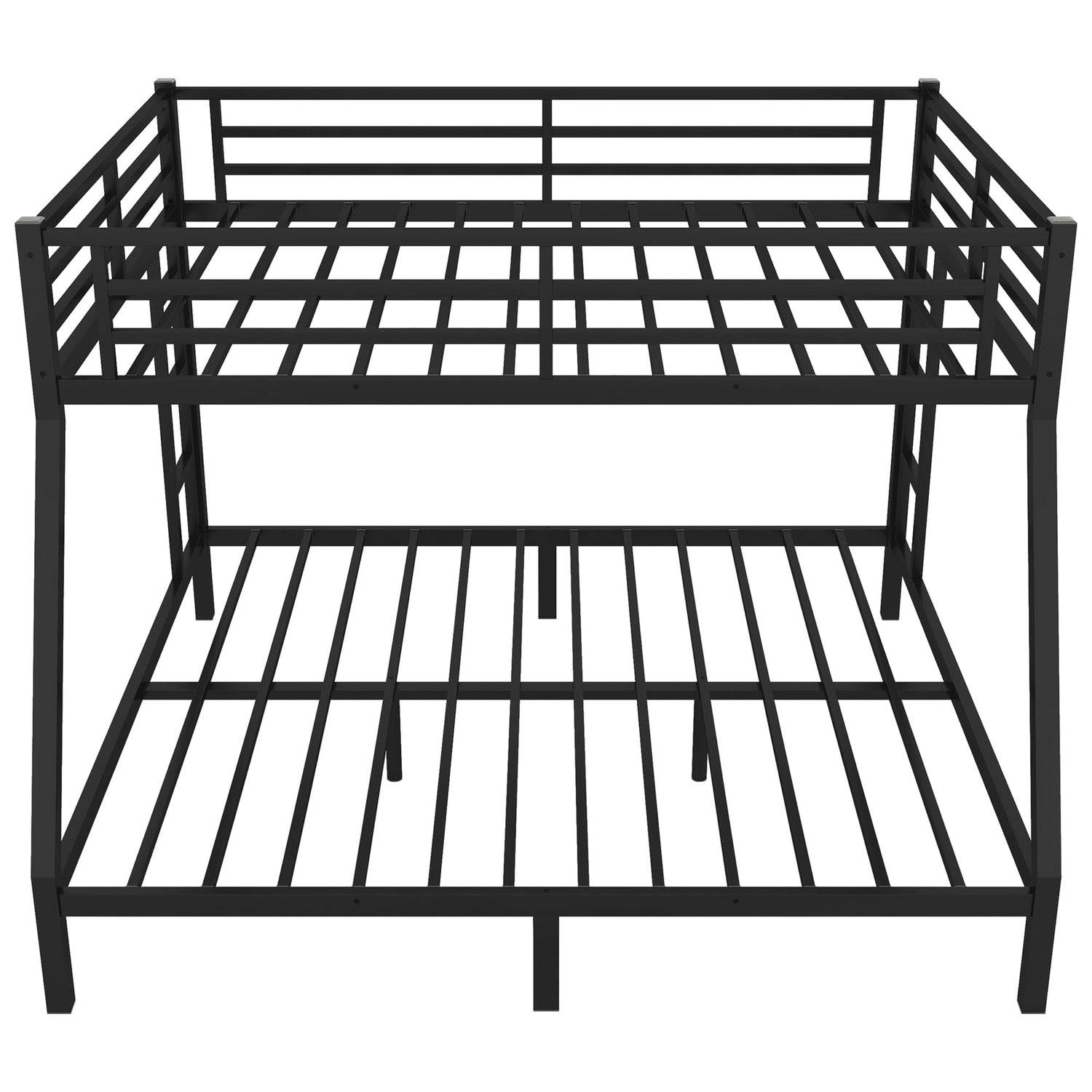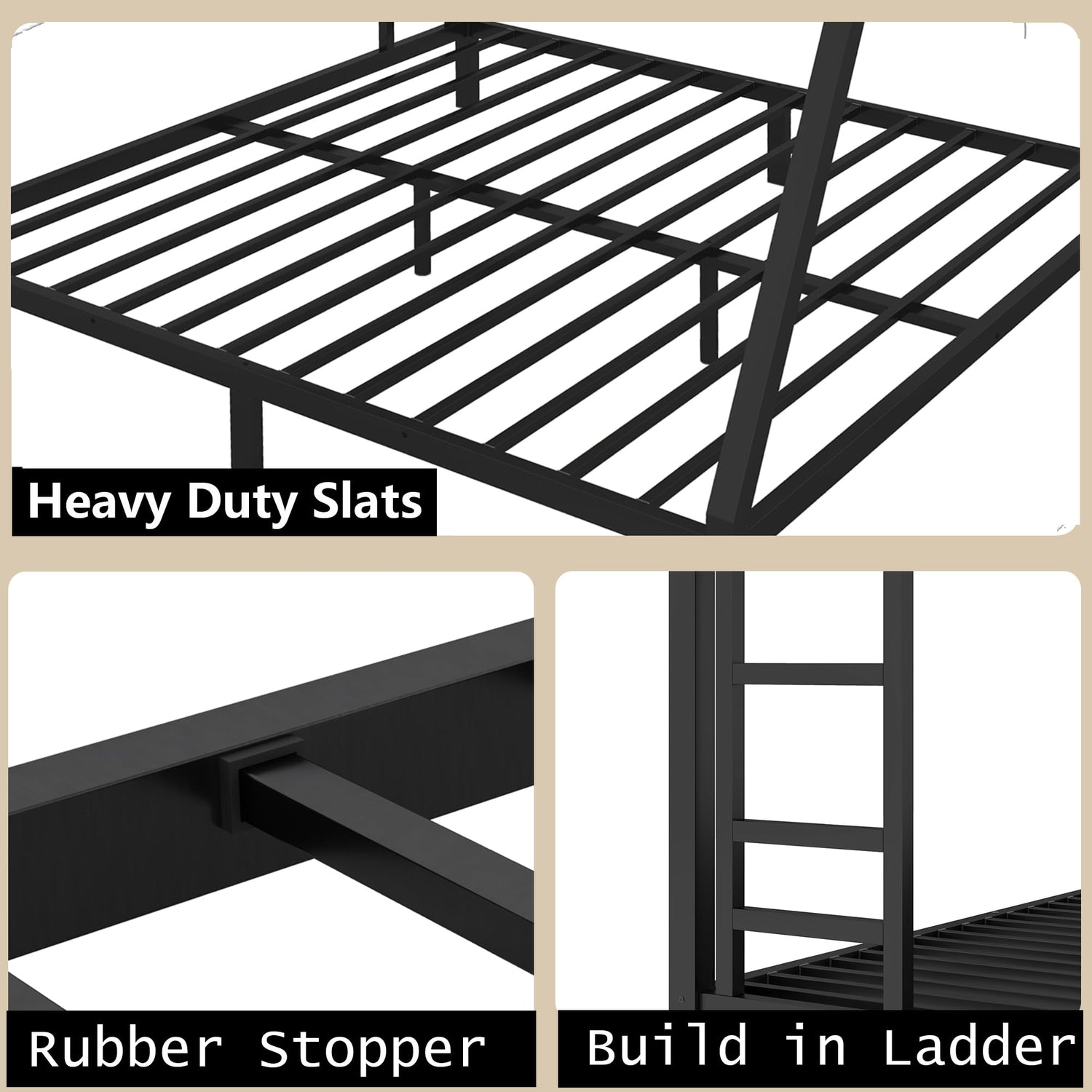 Queen Over King Bunk Bed for Adults, Teens, Queen Over King Bunk Beds with 2 Ladder and Full Length Guardrail, Heavy Buty Bunk Beds with Noise-Reducing Rubber Stoppers, Black