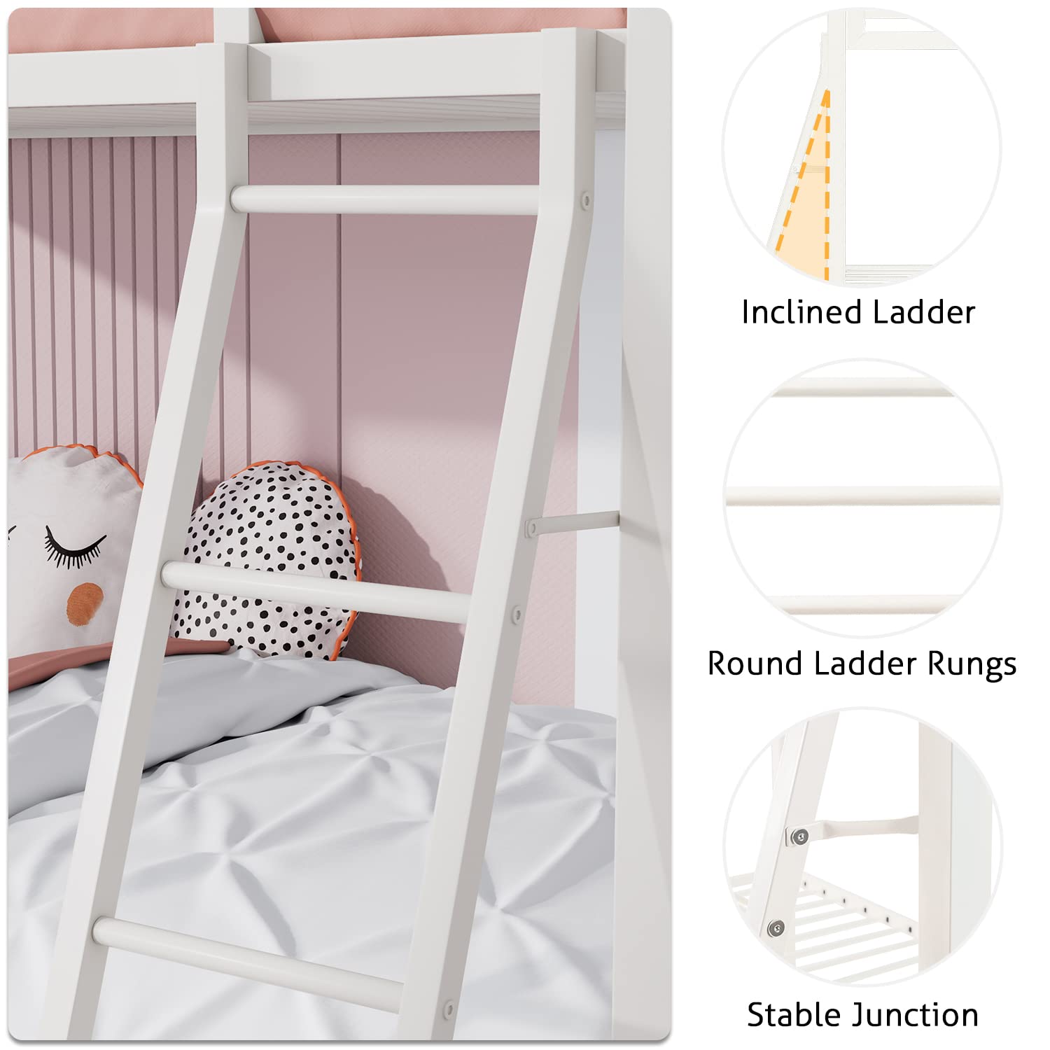 SHA CERLIN Loft Bunk Bed Twin Over Twin Size with Ladder and Guardrail,Heavy Duty Metal Slats Support No Box Spring Needed Small Space Saving Furniture for Bedroom Dorm,White