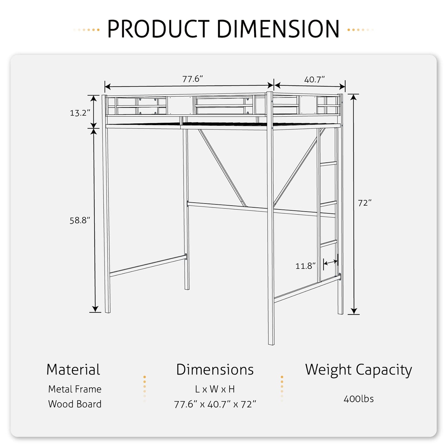 Built to last, the SHA CERLIN loft bed adopts a sturdy square frame structure that enhances its stability. With an impressive weight capacity of up to 400 lbs, this frame is designed to support varying needs and ensure durability over time.