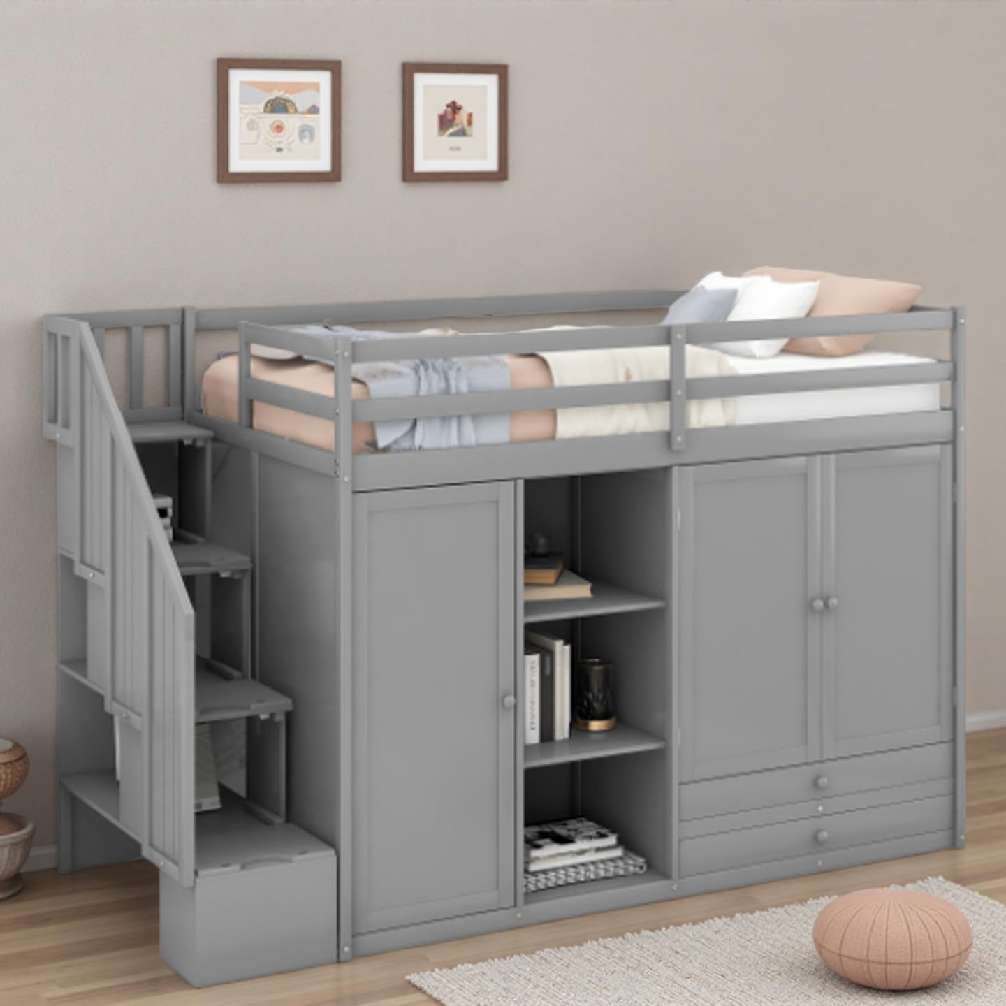 - 【Twin Loft Bed with Stairs】The side of the ladders are equipped with efficient storage space. You can decide whether the stairs are placed on the left or right.
