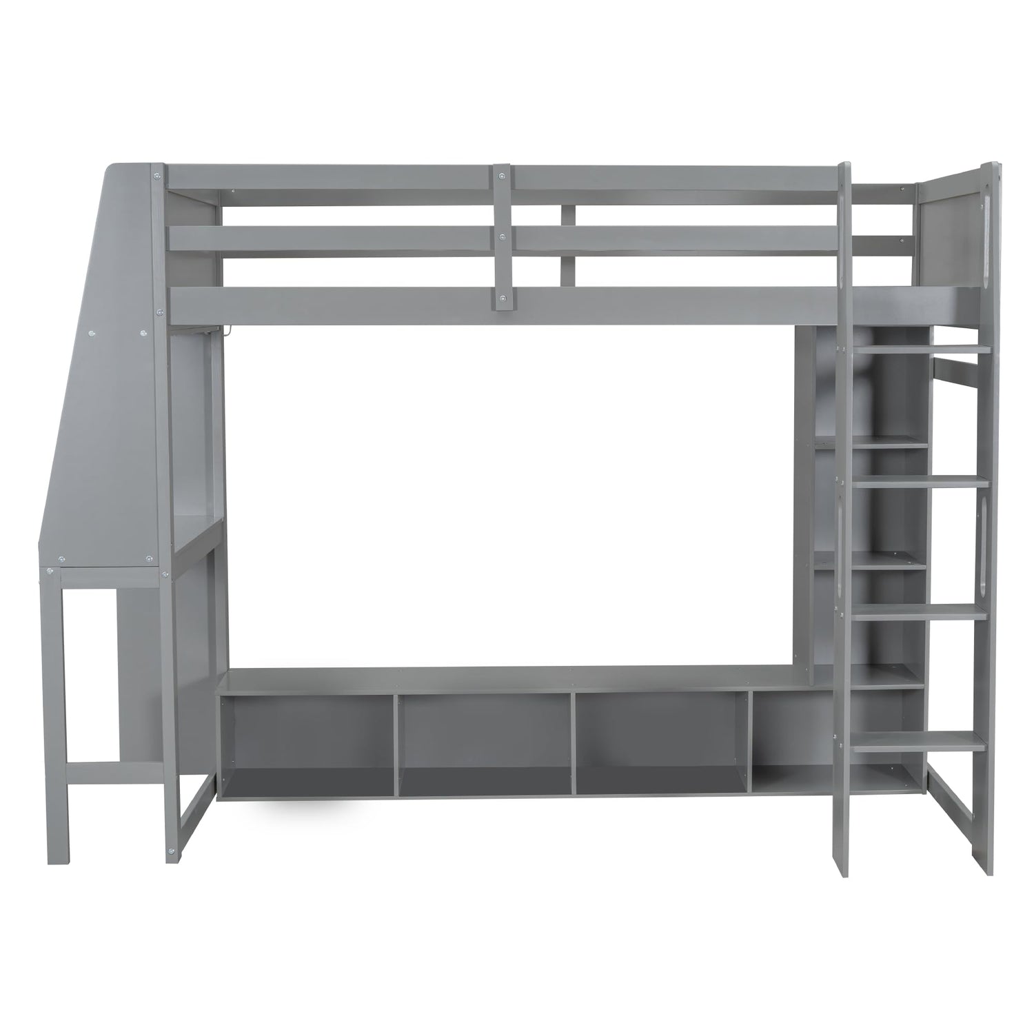 • [Space Saving Gaming Loft Bed]: This loft bed features a desk on the left side, a convenient shelf above, an open hanger and multiple storage compartments under the bed. Taking full advantage of vertical space, this bed is a great space saver for growing families, perfect for bedrooms with limited space.