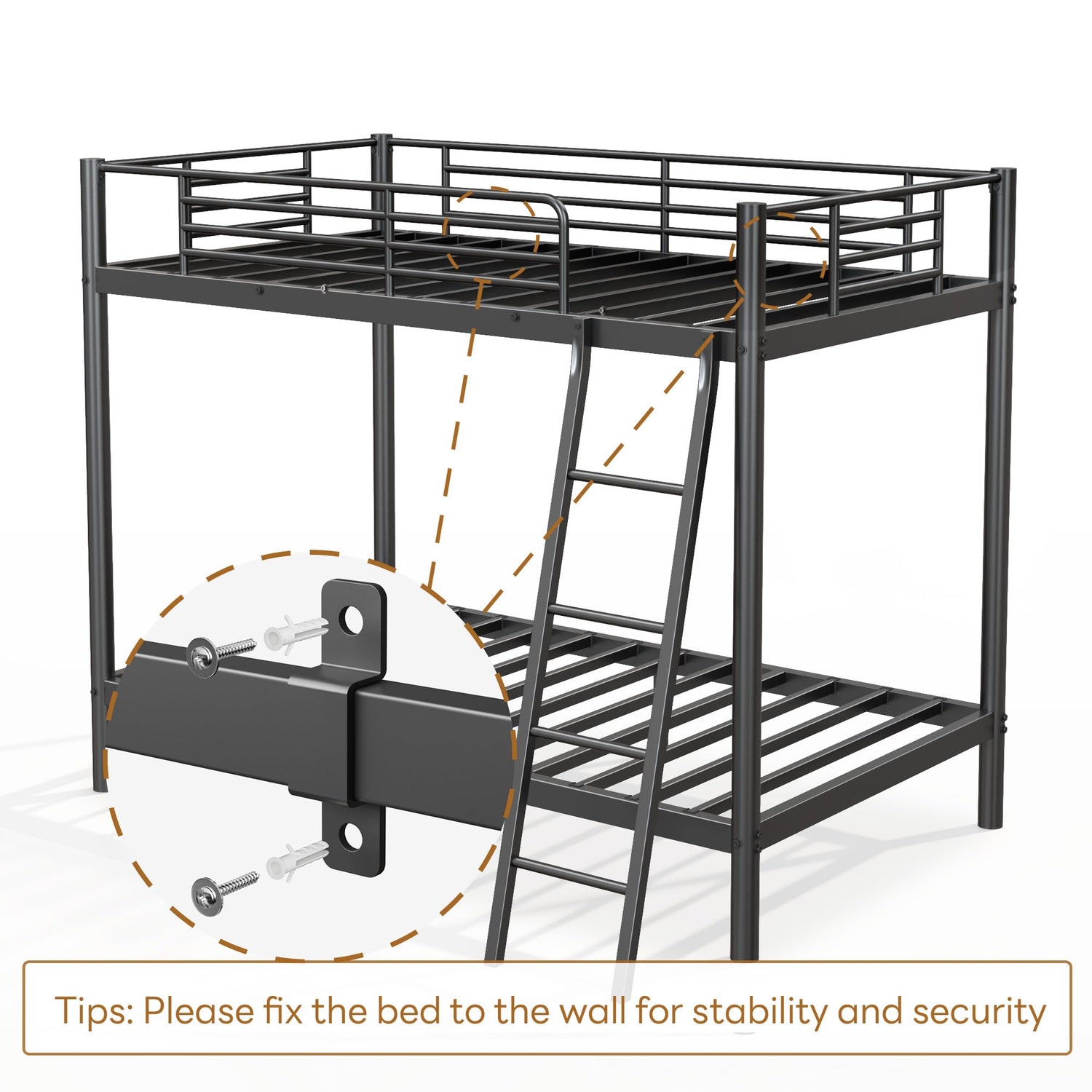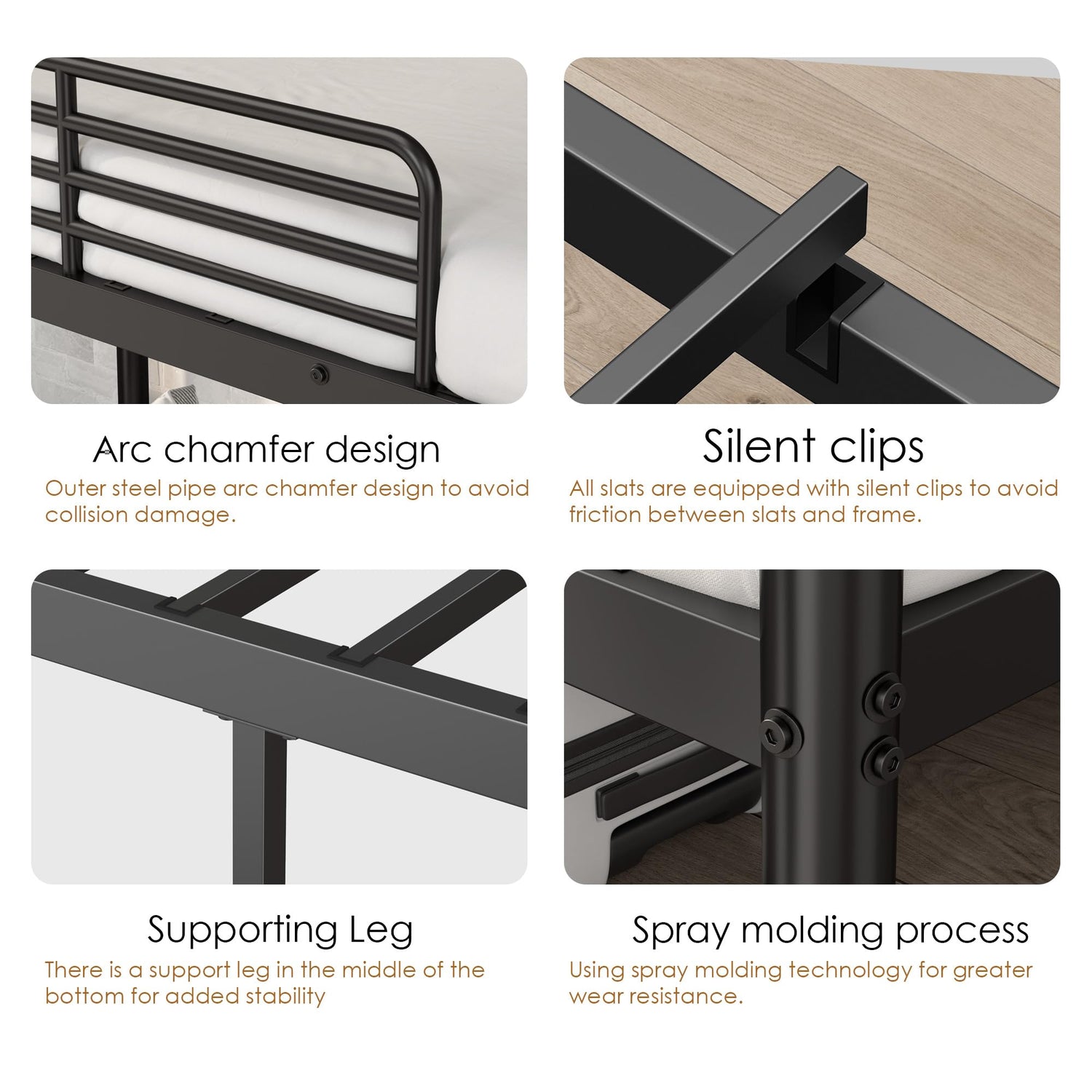 - 【No Box Spring Required】: Heavy metal slats support your mattress without the need for a box spring. Fixed slats and raised sides hold the mattress in place, preventing it from sliding. Suitable for 2 twin mattresses (sold separately).