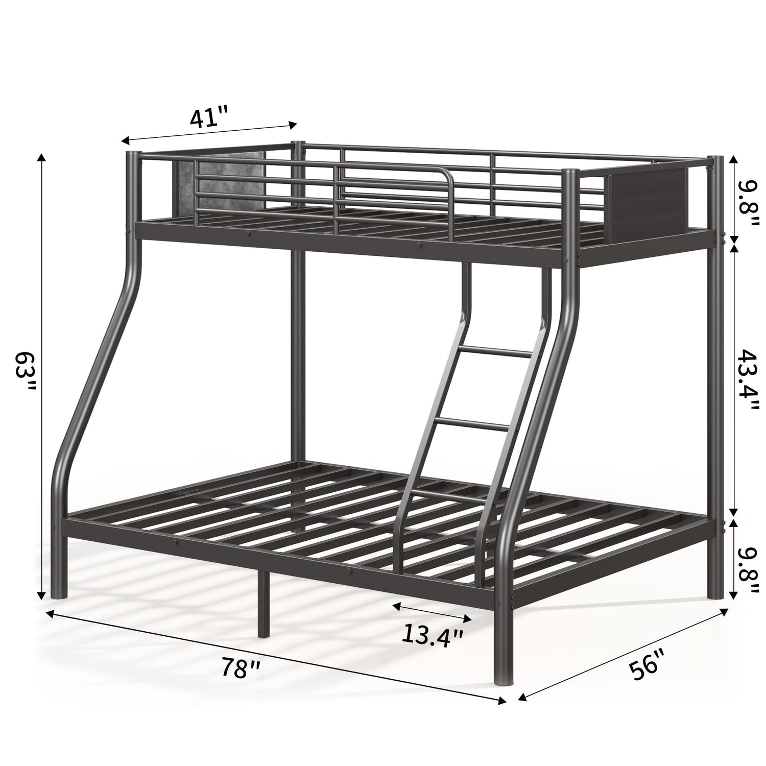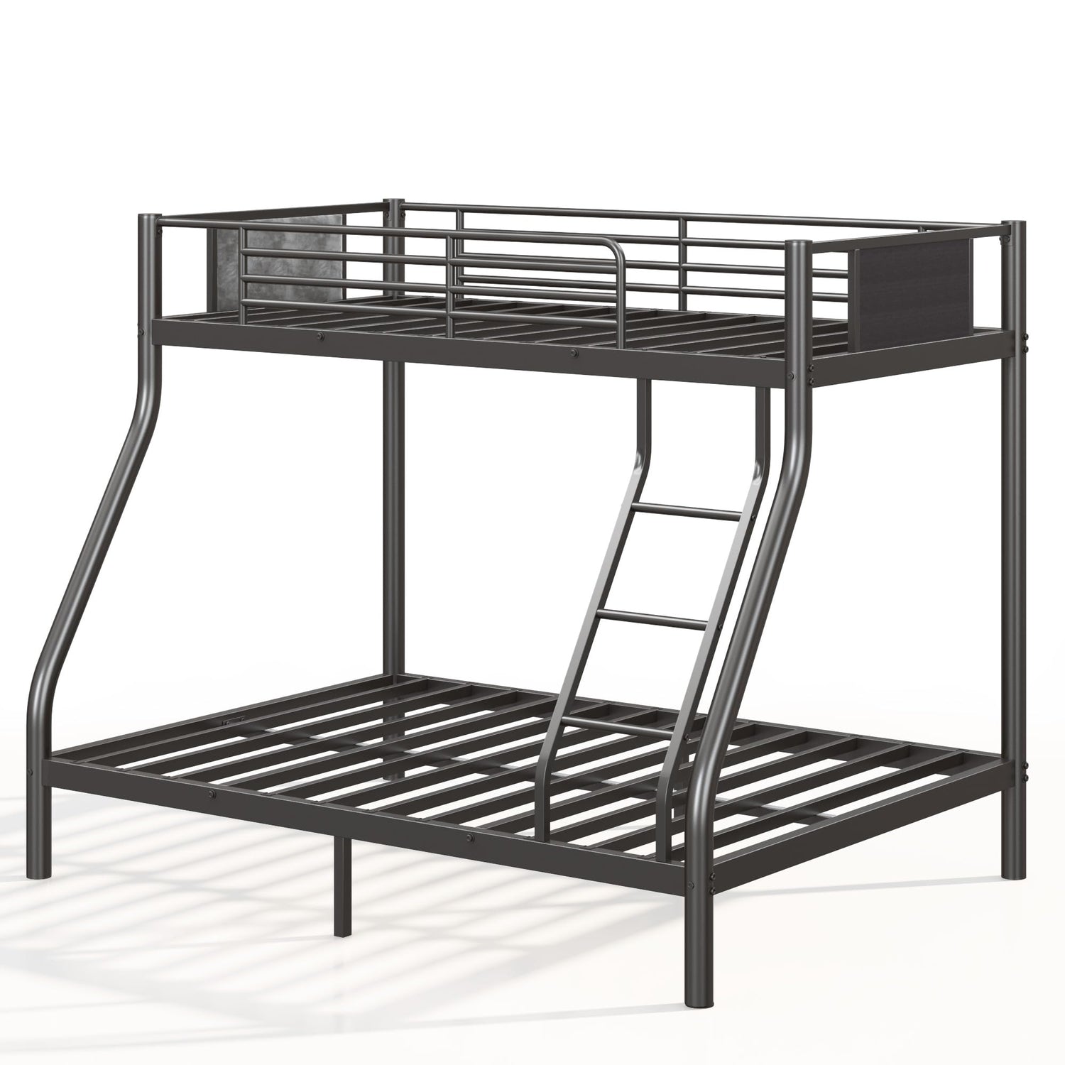 SogesSleep Bunk Beds Twin Over Full Size, Heavy Duty Metal Bunk Bed Frame with Flannel Board for Teens and Adults, for Spaces-Saving, Smooth Rounded Edges, Noise Free & Easy Assembly, Black