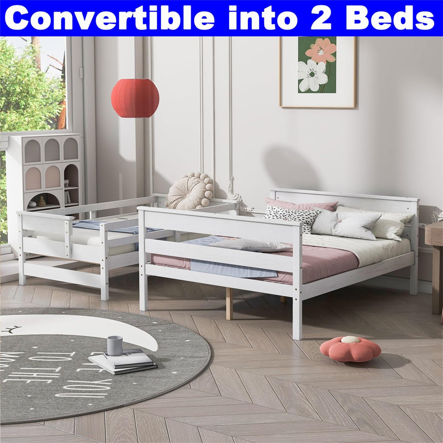 STERXONE Upgraded Version Thicken Solid Wood Twin XL Over Queen Bunk Bed, Stronger Queen Size Bunk Bed Frame, Convertible into 2 Beds for Adult, Easy to Assemble (White,Twin XL Over Queen)