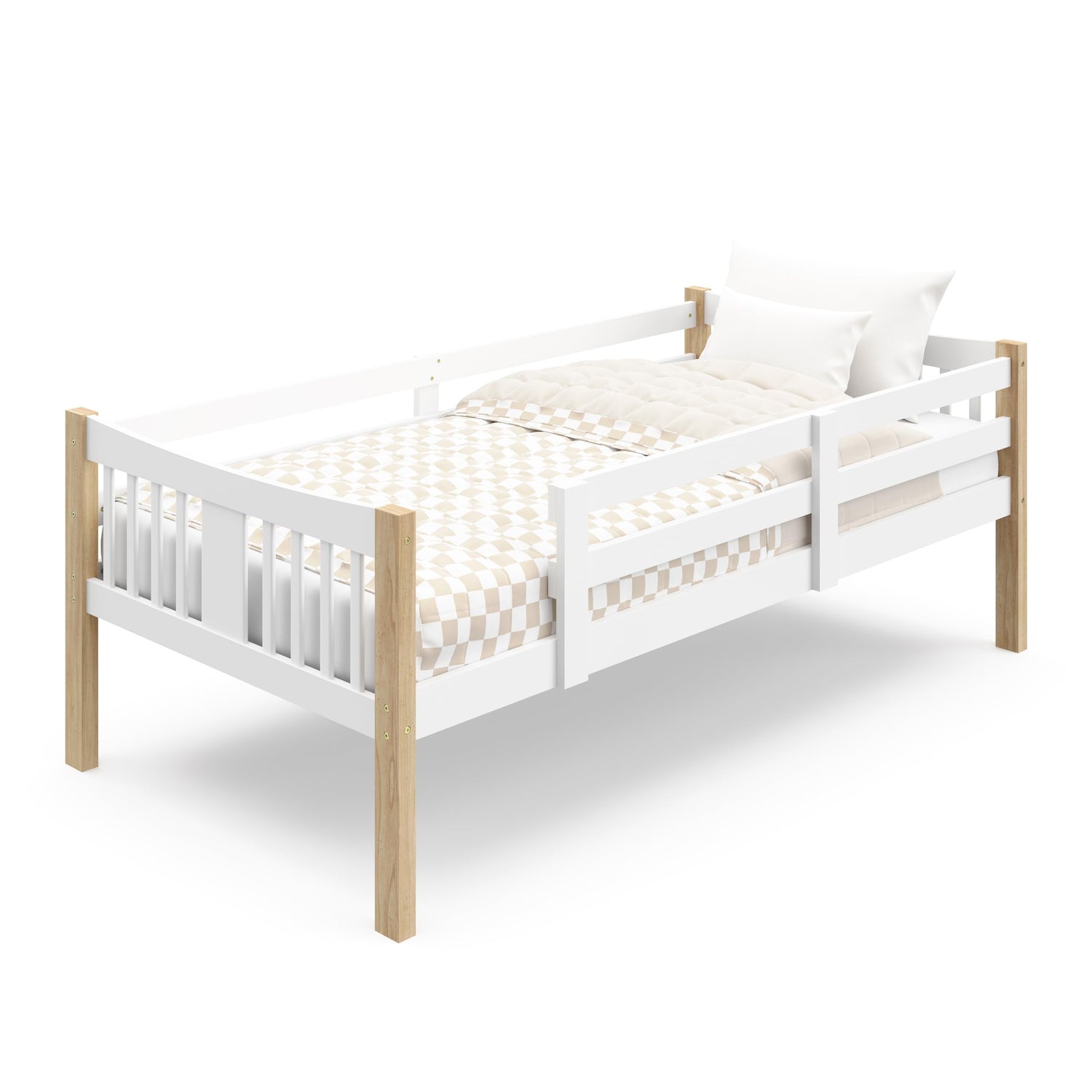 Details: The Storkcraft Caribou Solid Hardwood Twin Bunk Bed is an award-winning, iconic family-favourite. Its strong & sturdy construction, full-length safety guardrails, durable 5-step ladder, and unique fastening systems make the Storkcraft Caribou the perfect addition to any kids room. For added versatility, the Caribou can be configured into 2 separate twin-size beds. The Caribou is GREENGUARD Gold Certified — Certified products are screened for more than 10,000 chemicals and VOCs known to pollute indoor air. Storkcraft is the proud recipient of the Parent Tested Parent Approved (PTPA) Seal of Approval for nursery and children’s bedroom furniture, and the 2018-2023 Women's Choice Award for 9 out of 10 Recommended Baby & Kids Furniture. Backed by a 1-year limited manufacturer’s warranty. Assembly required. Mattress sold separately. Maximum weight of top bunk: 225 pounds. Warning: Bunk bed mattress should not exceed 7 inches in thickness.