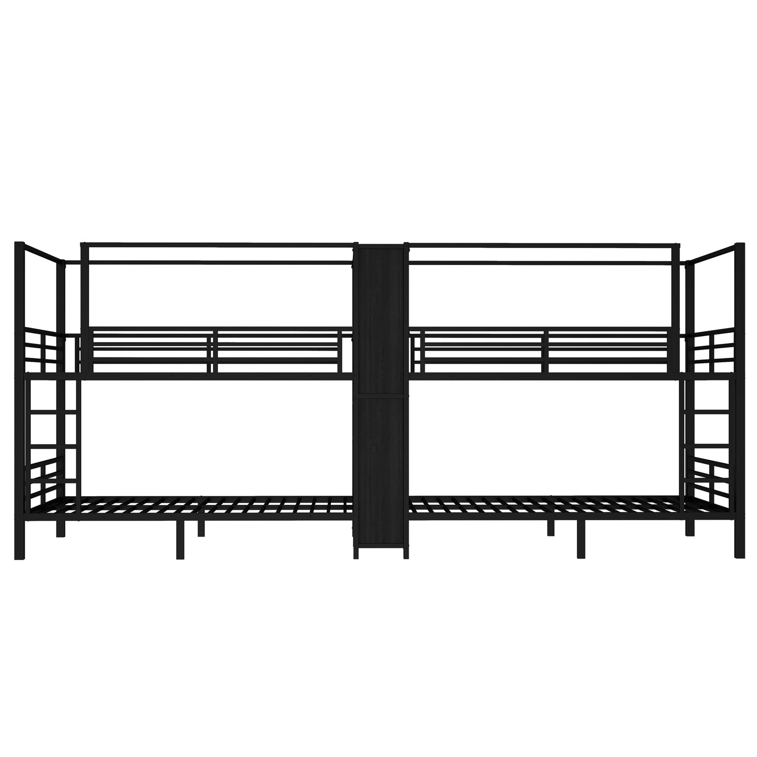 TCMILA Full Over Full Quadruple Bunk Bed for 4 Boys, Girls, Adults, Heavy-Duty Metal Bed Frame with Storage Shelves and Wardrobe, Space Saving, No Box Spring Needed, Black
