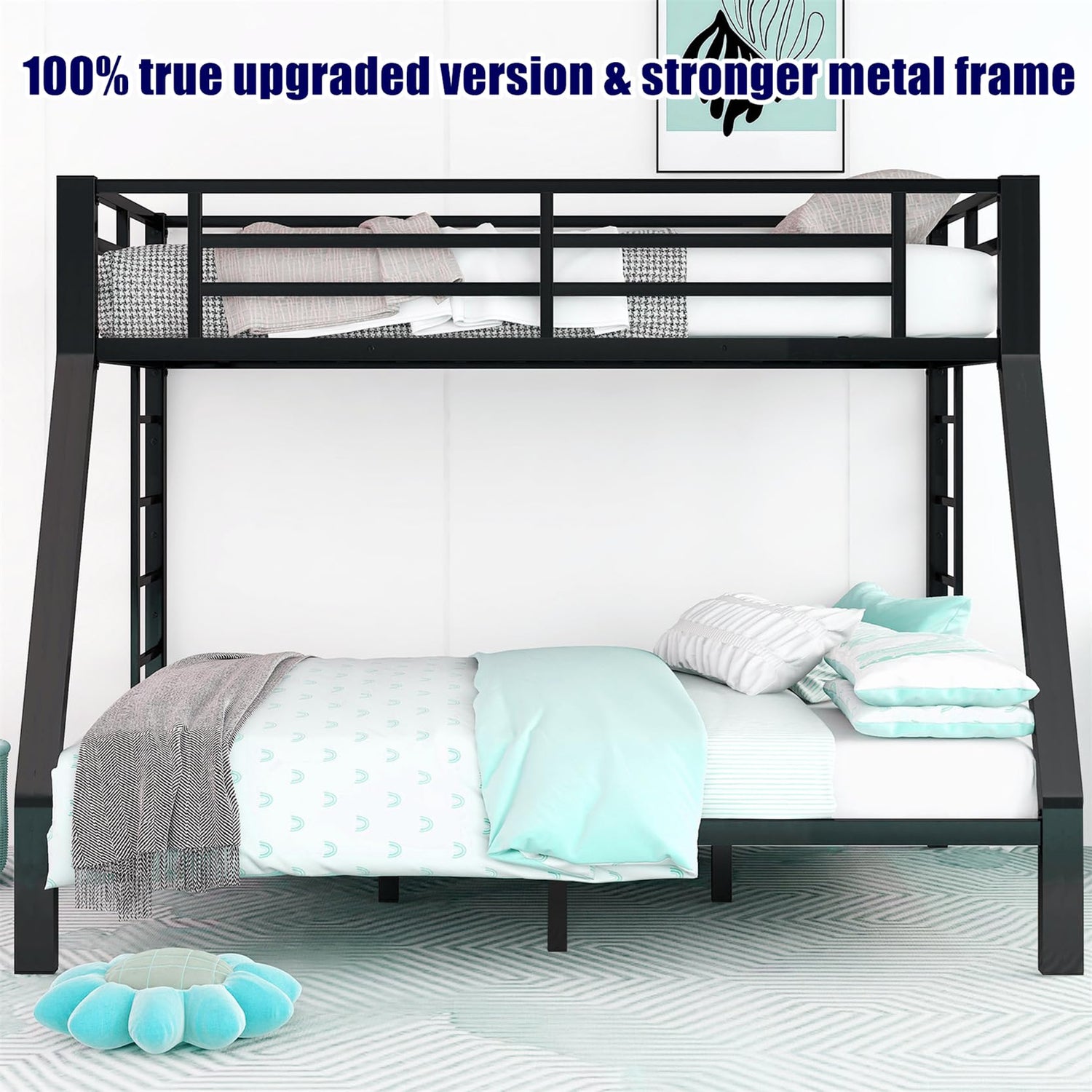 TIHWOALL Latest Upgrade & Stronger Twin XL Over Queen Bunk Bed, Heavy Duty Thickened More Rust-Proof Metal Steel Bunk Queen Bed with Enhanced Legs & Slats (Easier Assembly) (Twin XL Over Queen)