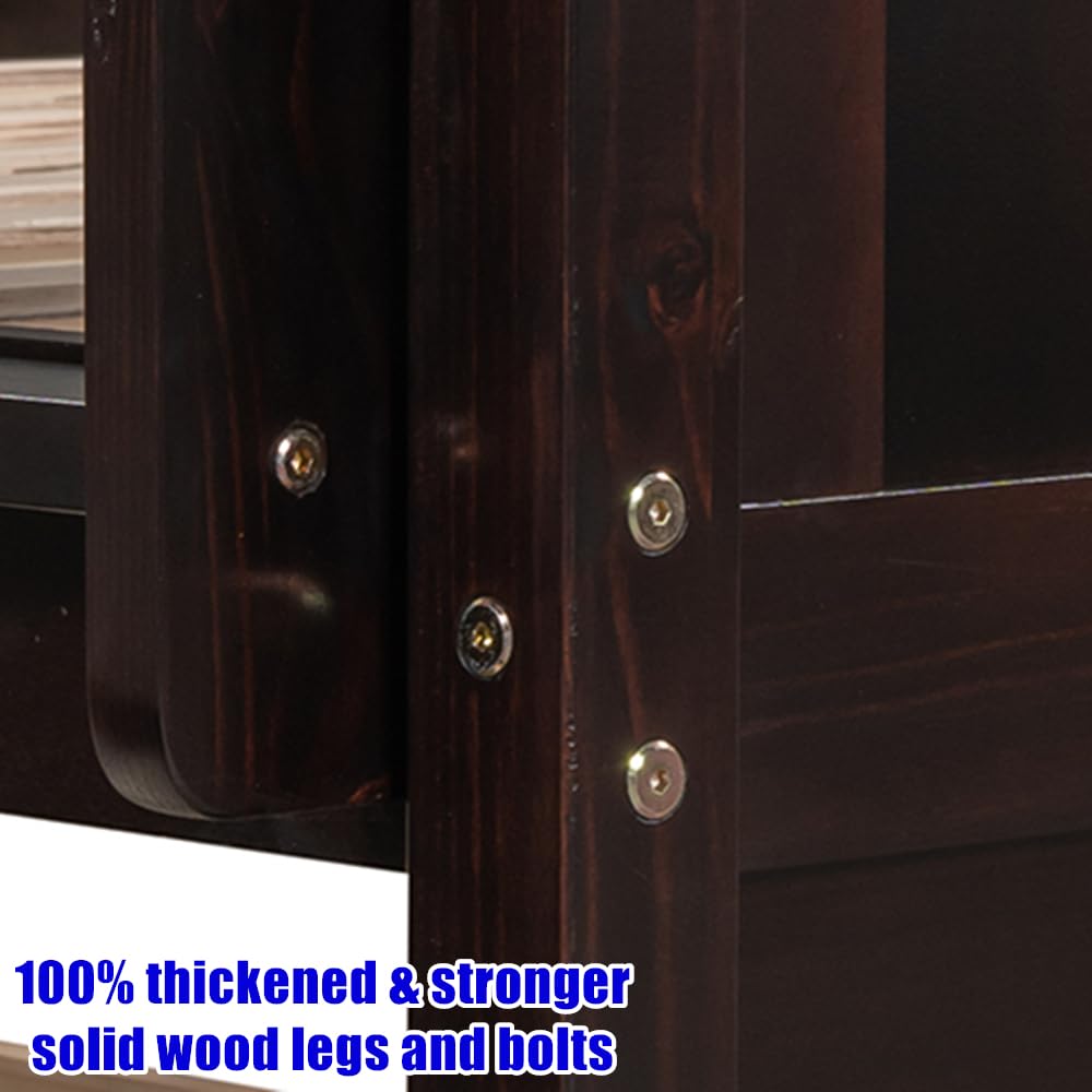 TSAMPA Latest Upgraded & Stronger Heavy Duty Solid Wood Full Over Full Bunk Bed with Trundle, Thickened Safer Convertible Bunkbed Frame (Easier to Assemble) (Espresso)