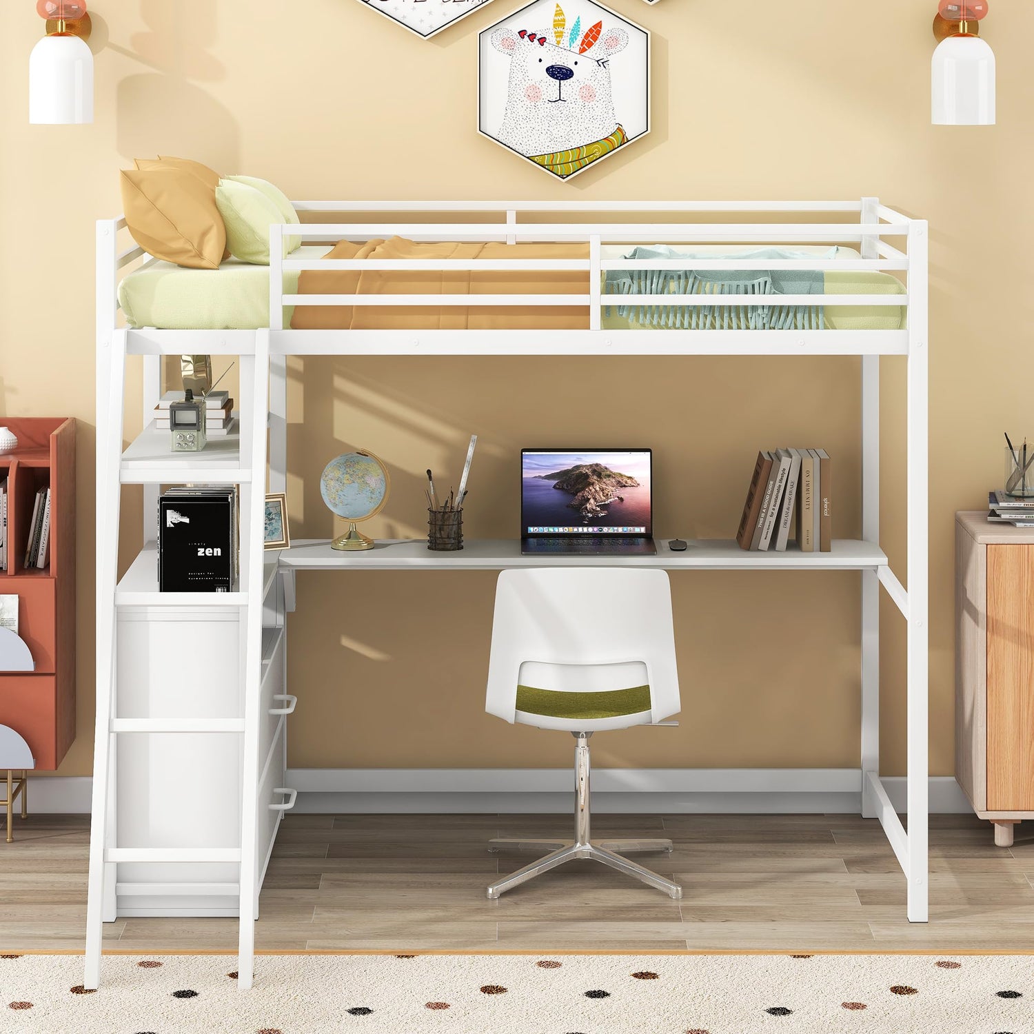 Bellemave Twin Loft Bed with Desk and Storage Drawers in White, Perfect for Kids and Teens