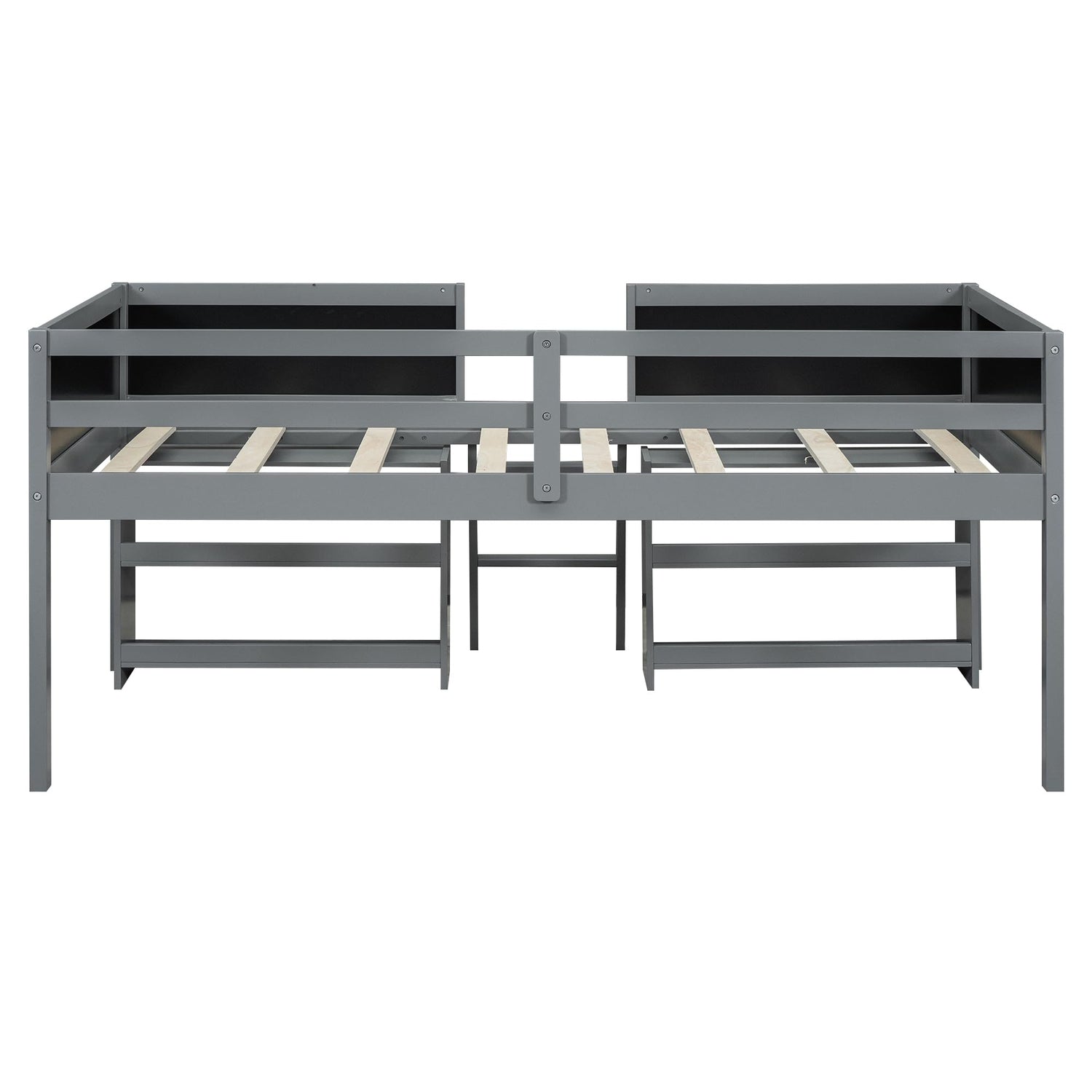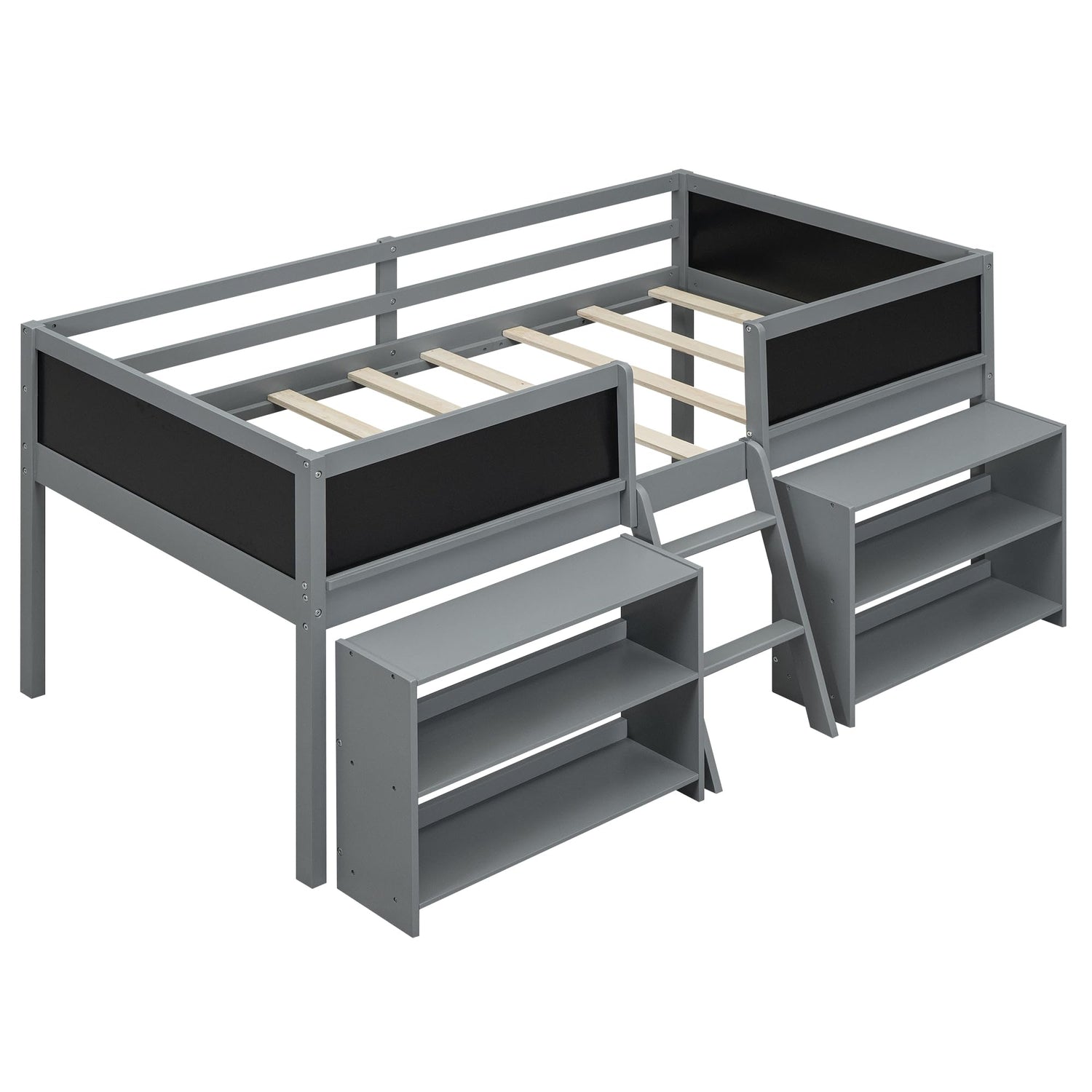 Bellemave Twin Low Loft Bed with Movable Shelves, Chalkboard, and Storage - Gray