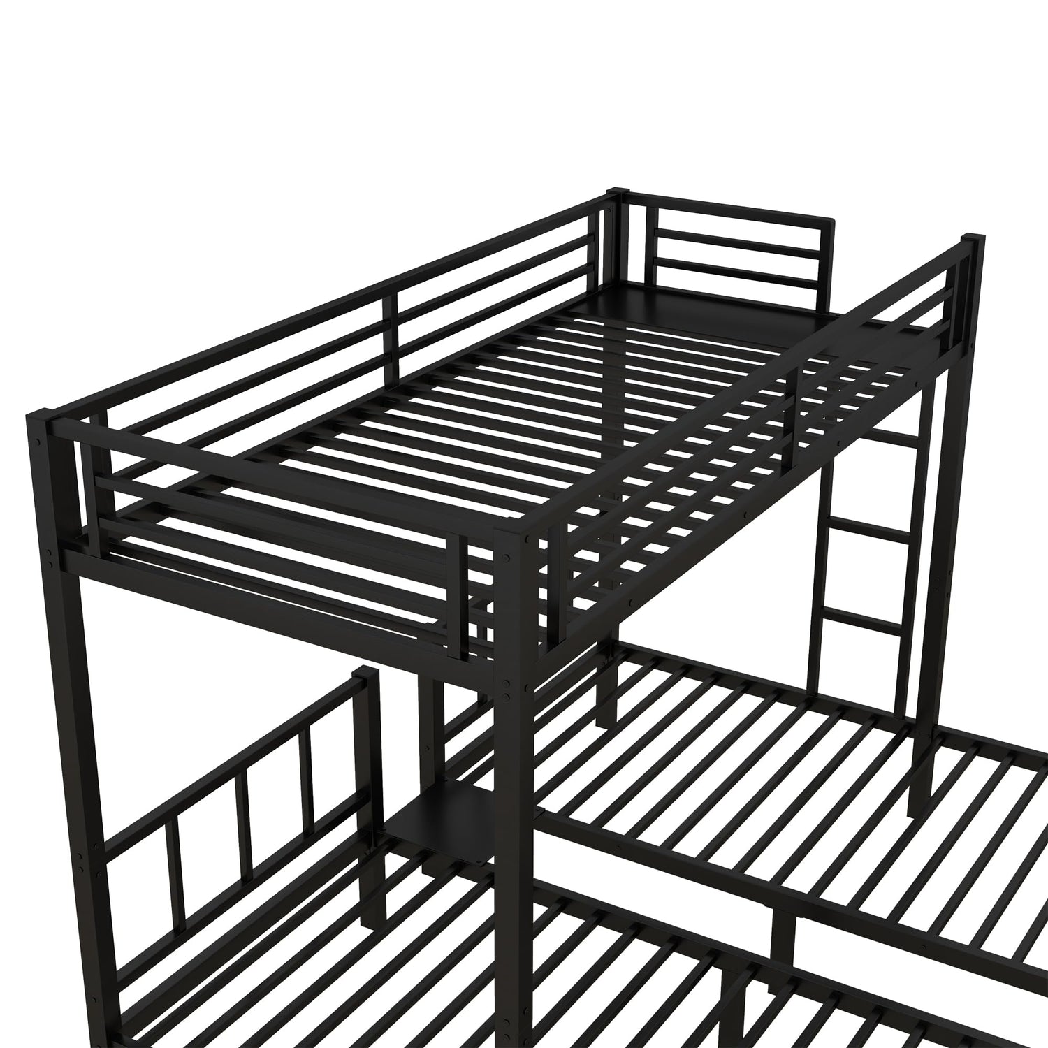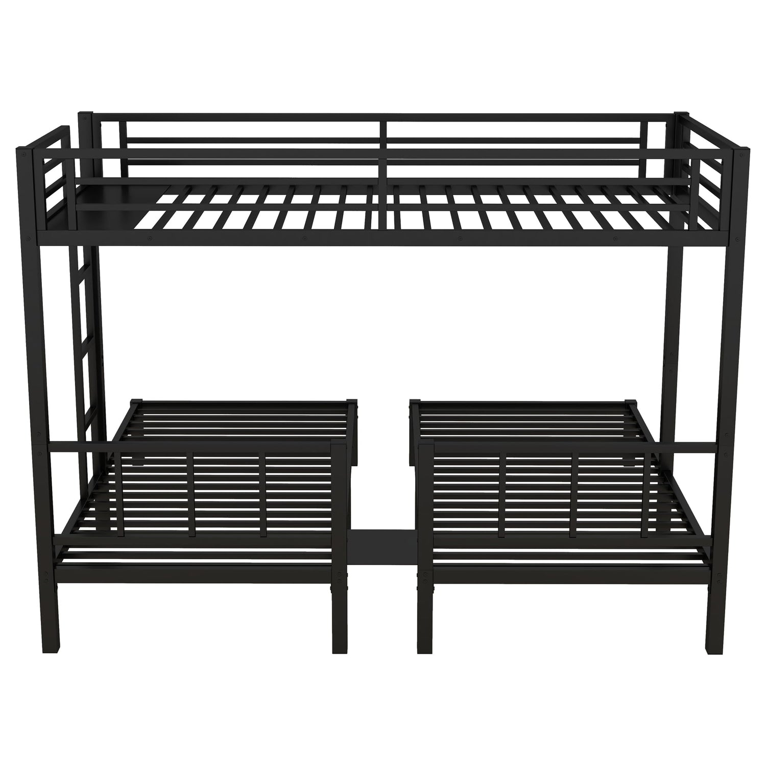 Twin Size Triple Bunk Bed for 3 Kids, Heavy Duty Metal Triple Bunk Bed with Safety Fence, Heavy Duty Triple Beds for Kids, Teens, Black