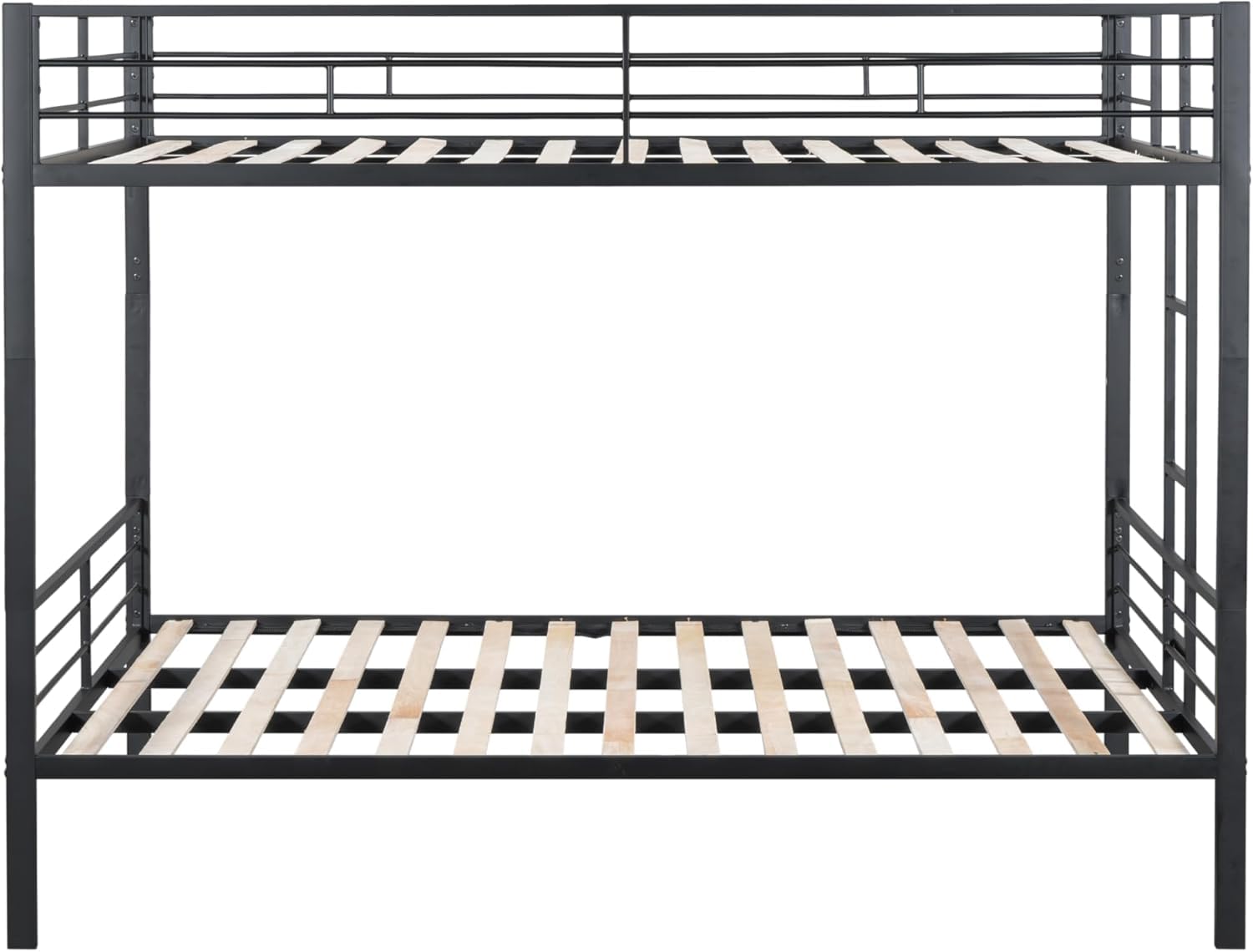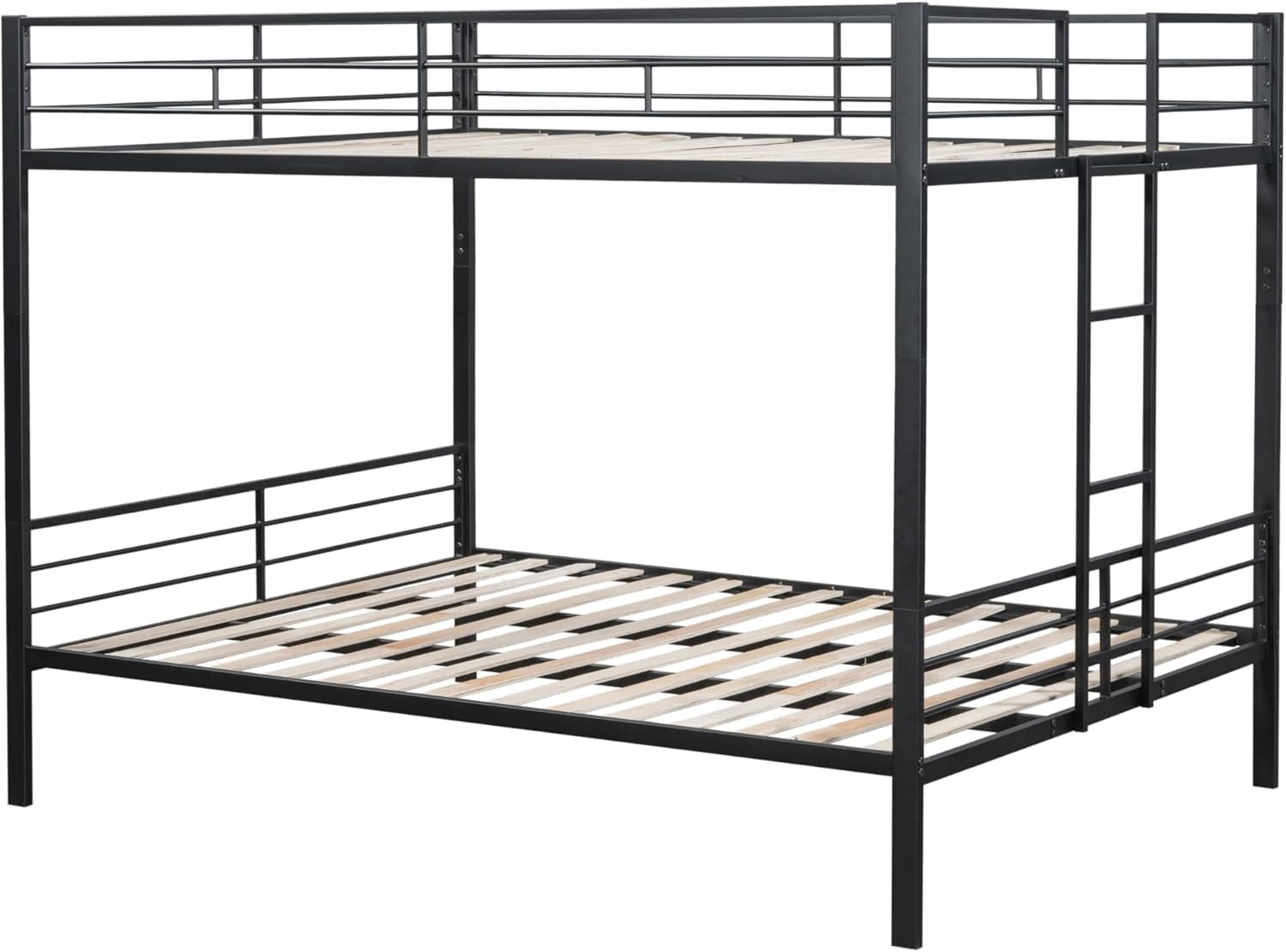 UOCFYK Queen Over Queen Bunk Bed, Heavy Duty Bunk Bedframe with Convertible 2 Beds & Ladder & Safety Rails for Condominiums, Dorm, Bedroom, Space Saving Design, No Box Spring Needed, Black