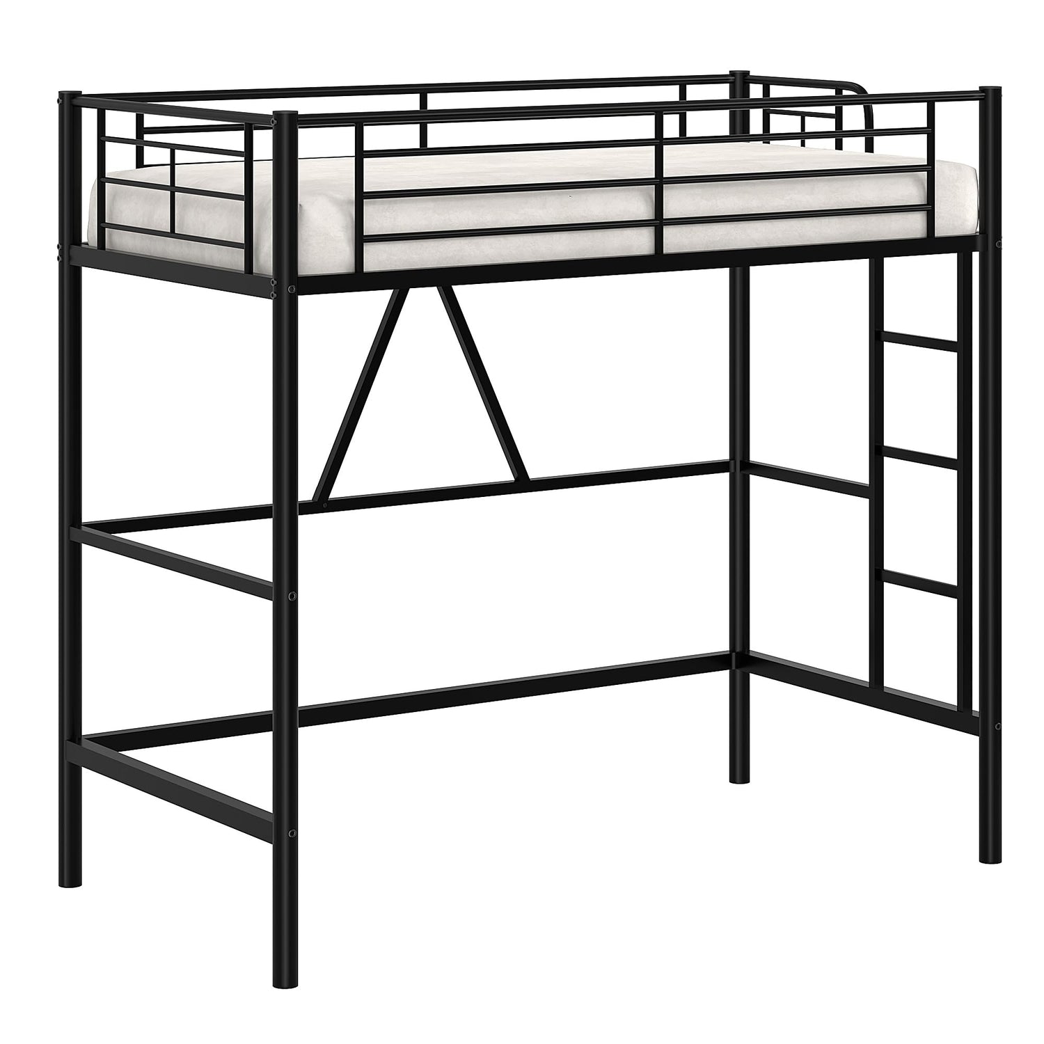 • [Sturdy & Stable]: Crafted from industrial-grade steel and 23 reinforced wooden slats, this twin loft bed delivers robust support for long-term durability. Its extra triangular reinforcement and anti-tipping hardware further enhance stability, minimizing any wobbling.