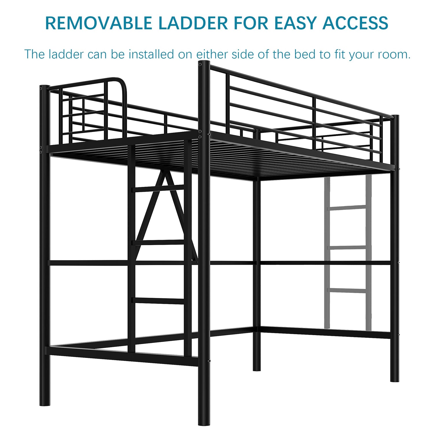 - Featuring a customizable ladder that can be installed on either side, this bed adapts to your room layout effortlessly.