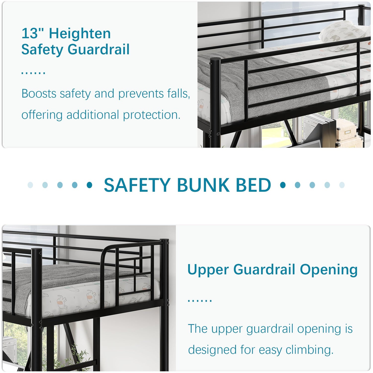 - Full-length guardrails provide added safety, while the sleek line complements any decor, making it ideal for kids, teens, or guest rooms.