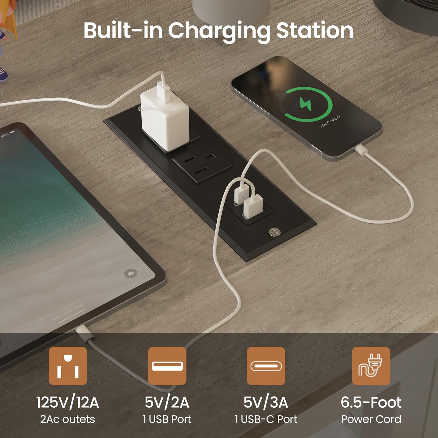 - 【💻Integrated Desk with Charging Station】Never scramble for power outlets again! The bunk bed with a built-in side desk features a dedicated charging station with 2 AC outlets, 1 USB port and 1 fast-charging Type C port, keeping laptops and devices powered up. Stay organized with 3 fabric drawers, a mesh organizer, and 6 sturdy S-hooks, essentials are always within reach for work or study.