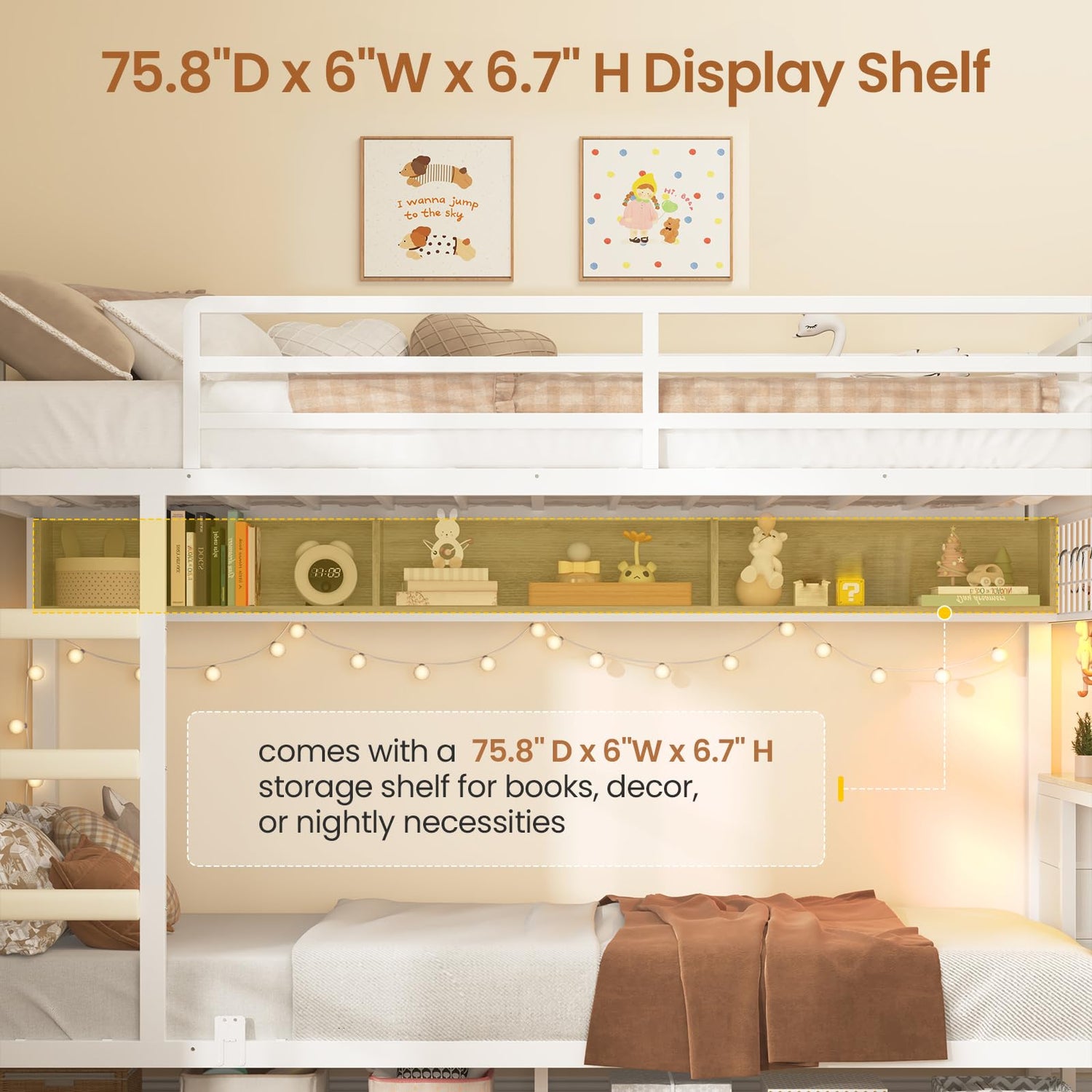 - 【🧺Ample Integrated Storage】Ditch the clutter with our bunk bed with storage! The lower bunk bed boasts convenient shelving ideal for books, decor, or nightly necessities. The top bunk bed includes two dedicated headboard storage boxes, acting as a secure bedside nightstand, no more climbing down for your phone or book!