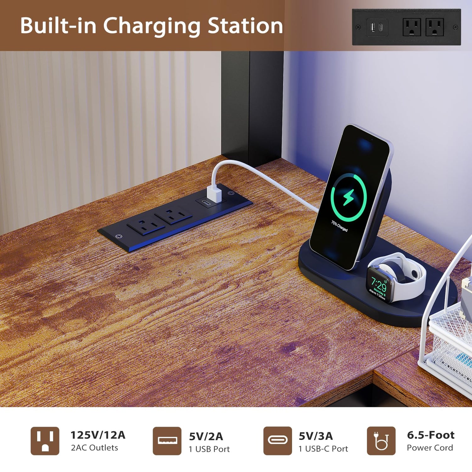 - 【Large Desk with Charging Station】Nestled perfectly beneath the top bunk bed, a sturdy L-shaped study desk offers ample workspace or gaming center. It features a built-in power outlet with 2 AC Outlets, 1 USB Port and 1 fast-charging Type C, keeping your devices charged and cords tidy right where you need them.