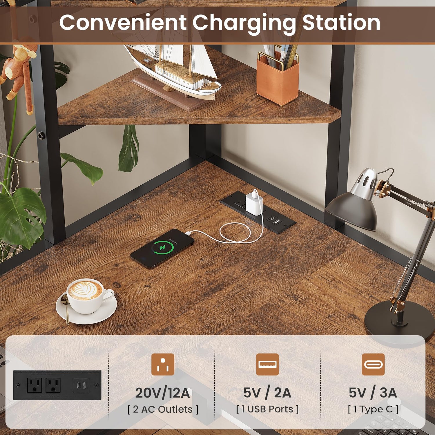 VIAGDO Loft Bed with Desk with Charging Station & LED Lights, Loft Bed Twin Size with Storage Shelves,Clothing Rail, Metal Twin Loft Bed with Safety Guard & Ladder, No Box Spring Needed (Black)