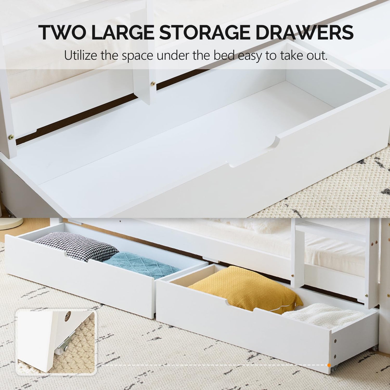 - 【Ample Storage】With two drawers, the Bunk Bed with Storage offers convenient storage solutions. These drawers help keep your space organized and clutter-free, making it easy for kids to access their belongings while promoting a tidy living environment.